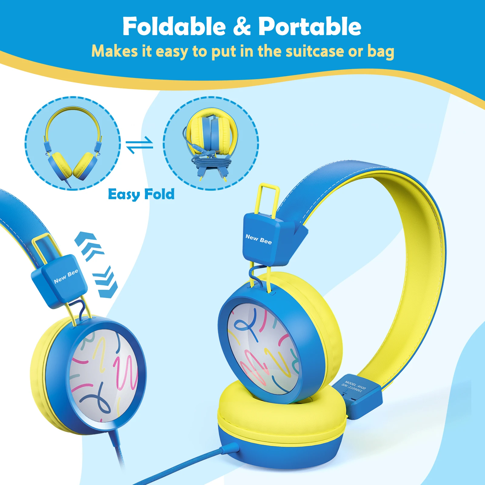 Clearance New Bee Kids Headphones Headset Wired Headphone Foldable Earphone with Mic Music Headset Limited Volume for Children