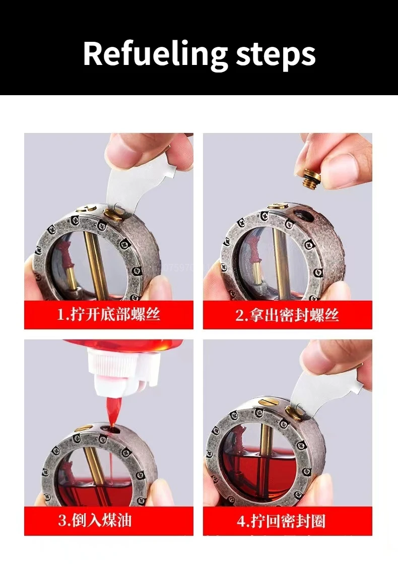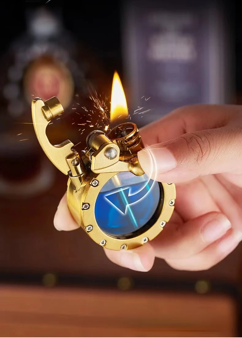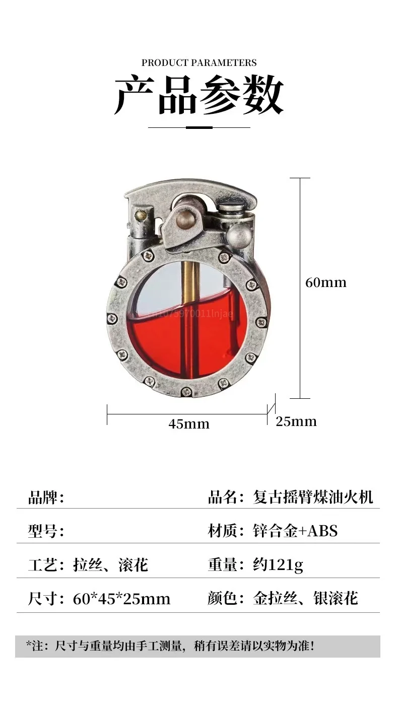 New Retro Transparent Oil Tank Metal Rocker Kerosene Lighter