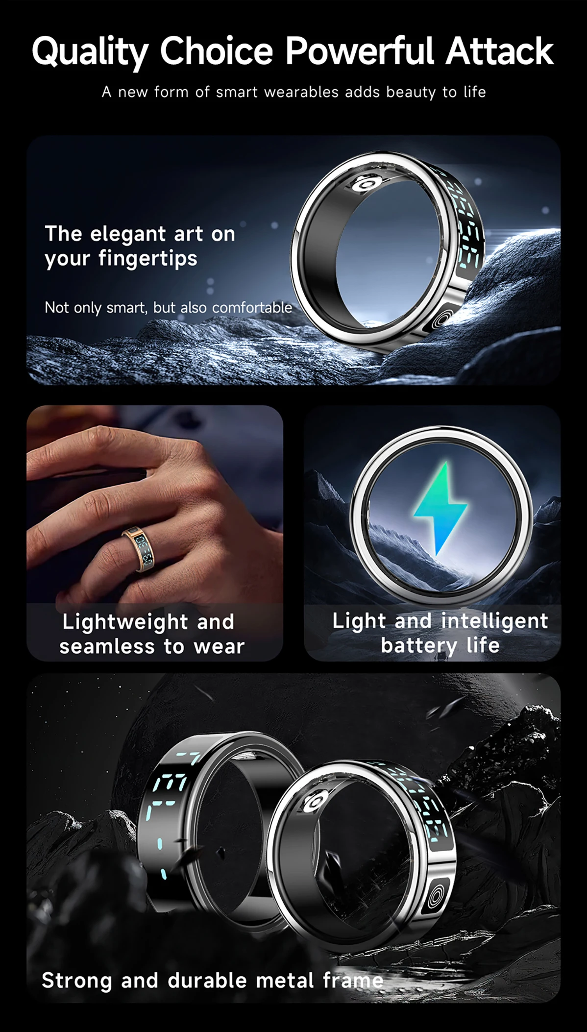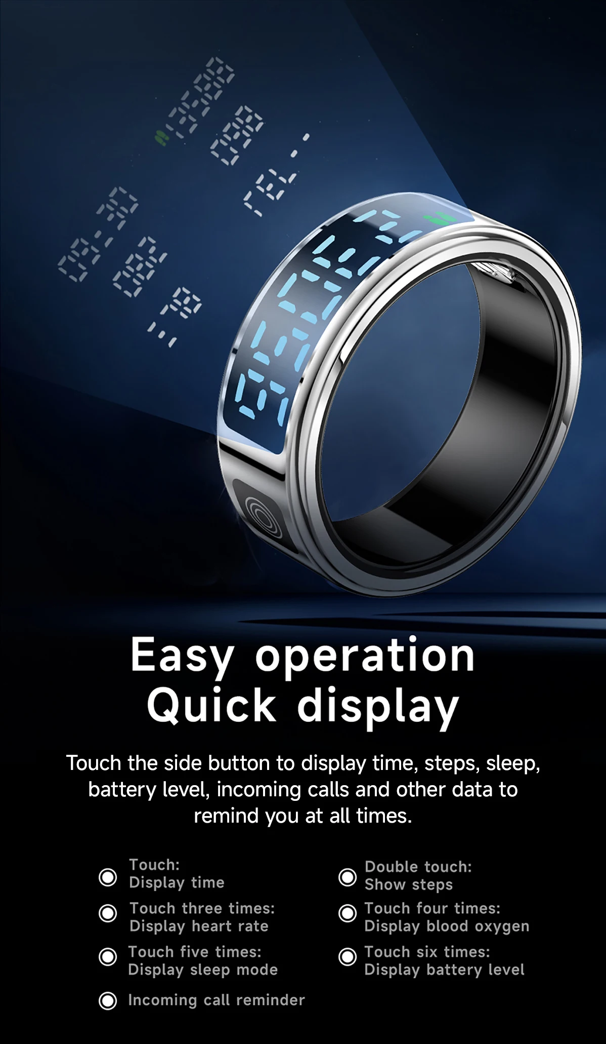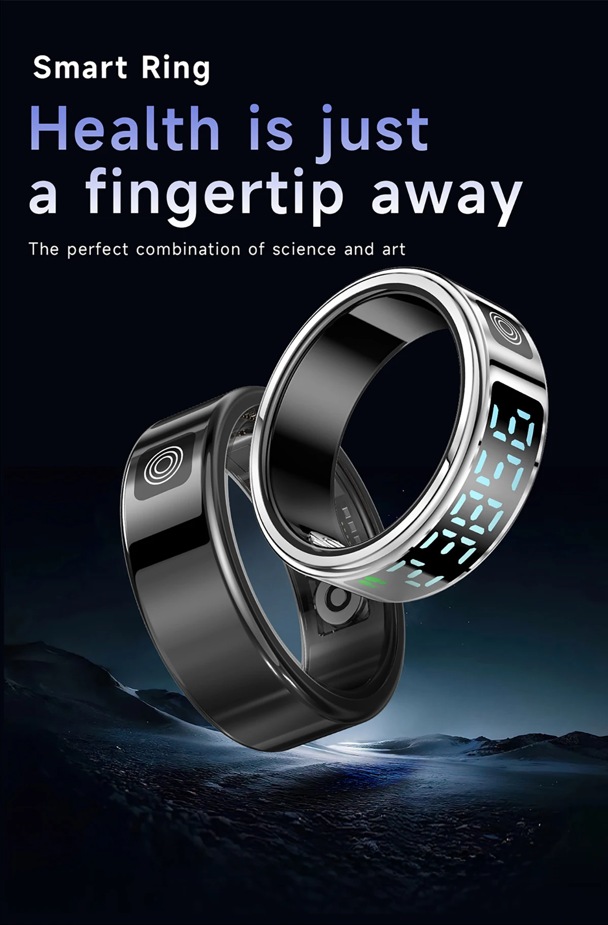 SR08 Smart Ring Men Women LED Display Screen Bluetooth Blood Oxygen Monitoring Multi Sports Mode IP68 5ATM Waterproof