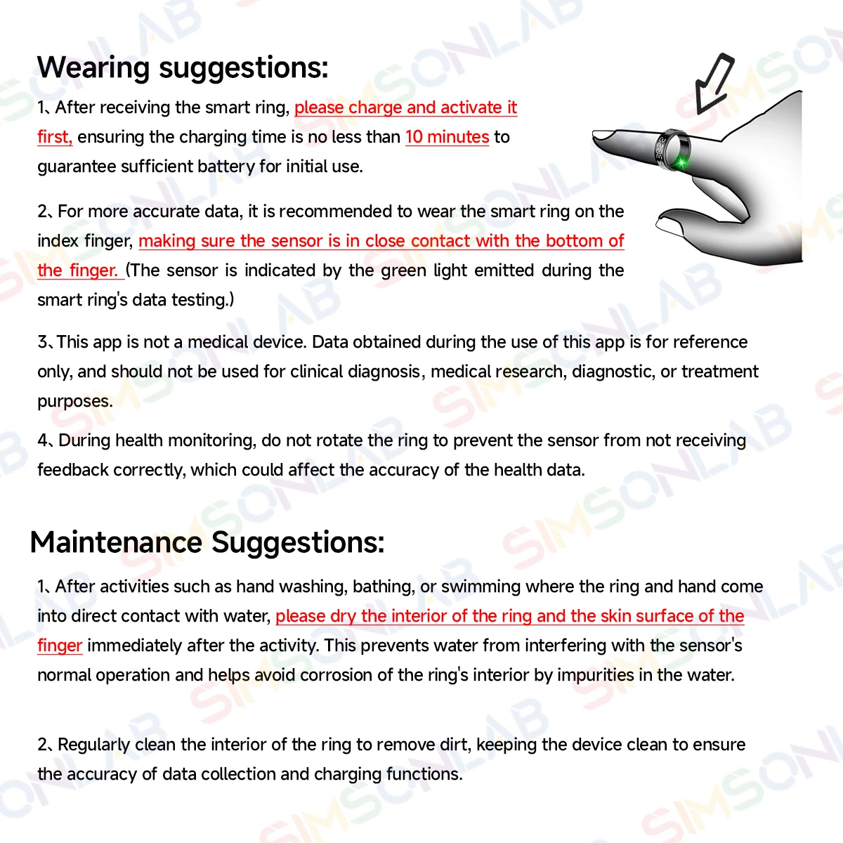 1. After receiving the ring, please charge it first, because after a long time of logistics, the ring will be low on power.