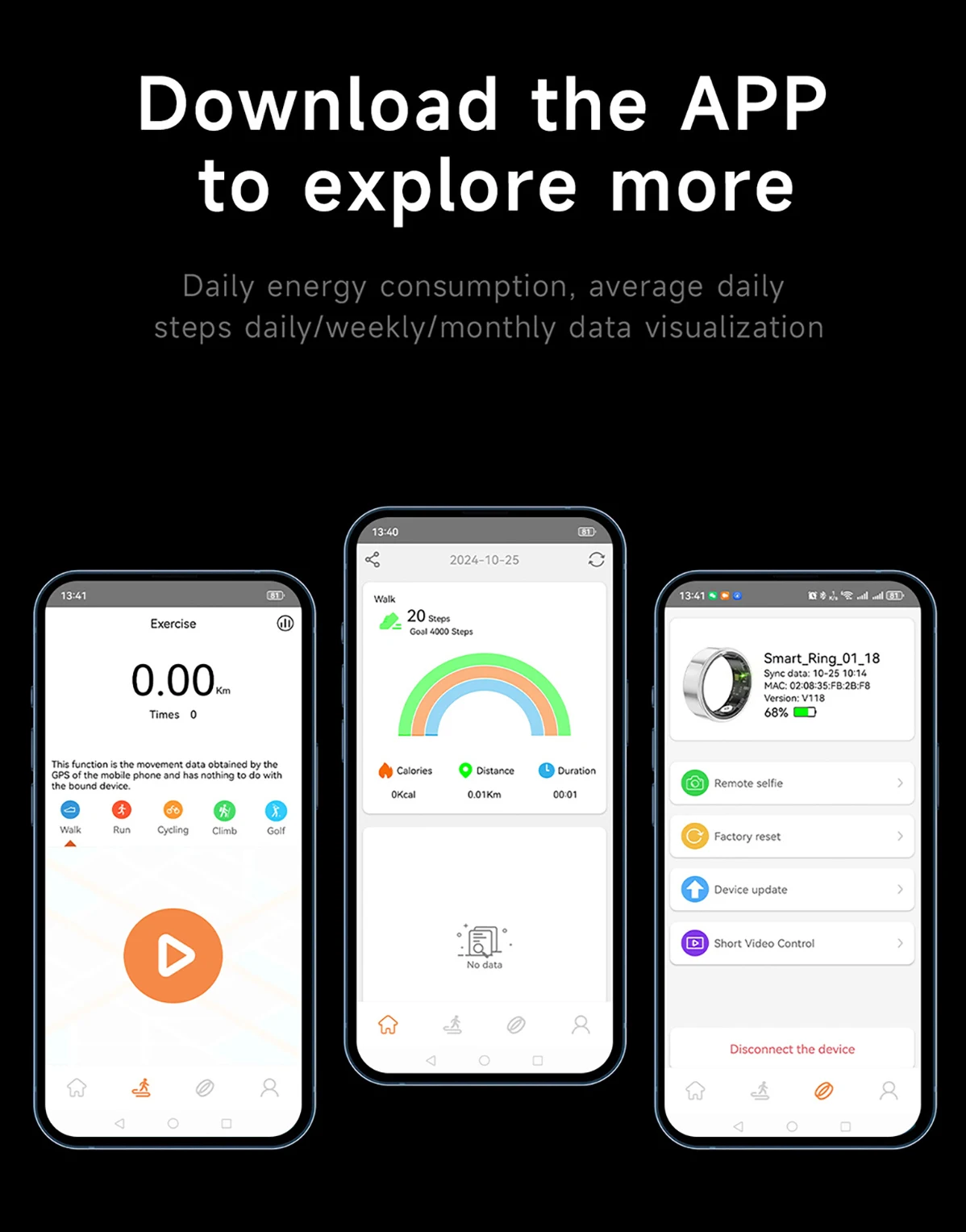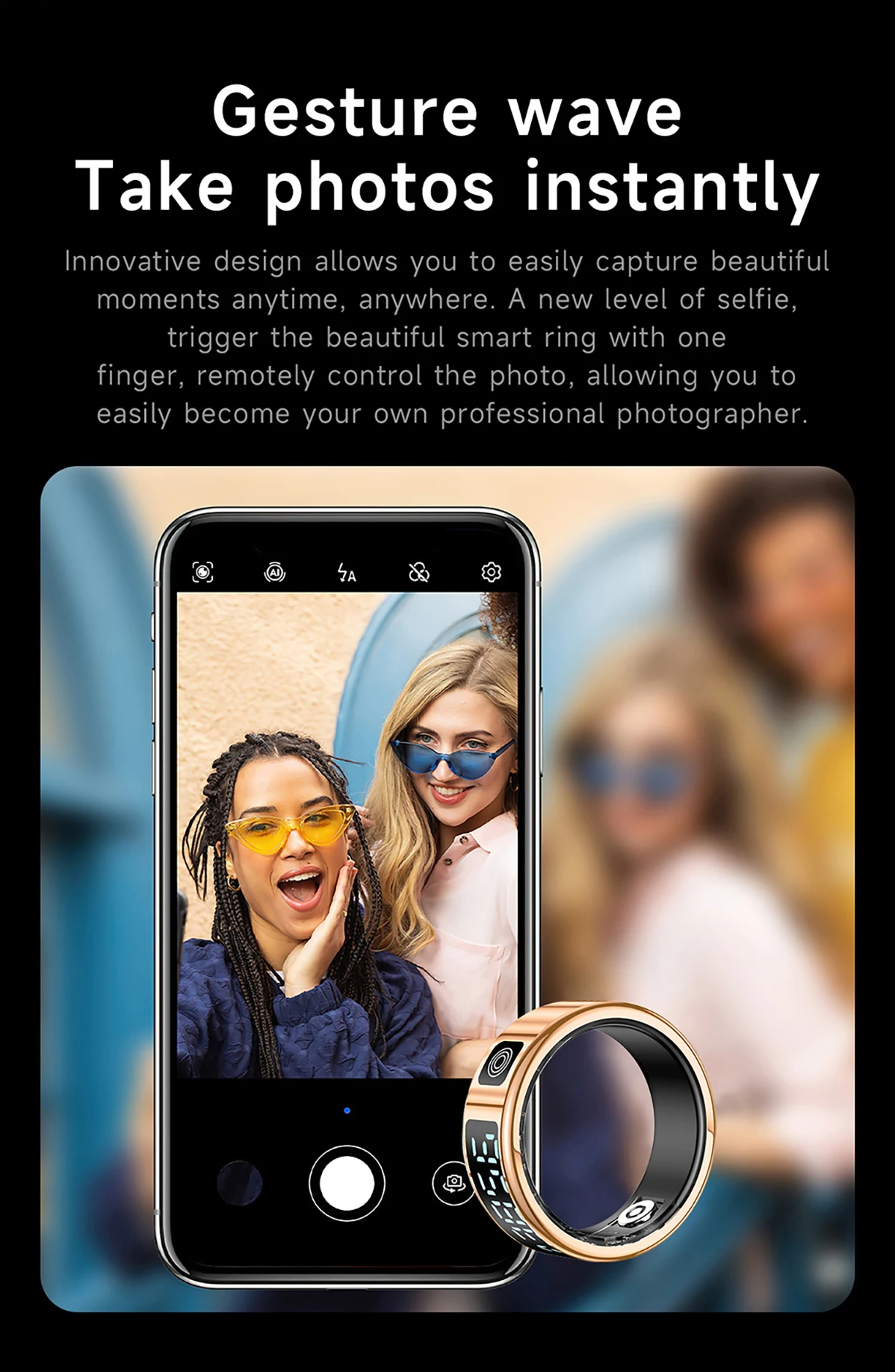 2.Gesture wave Take photos instantly:A new level of selfie, trigger the beautiful smart ring with one finger, remotely control the photo, allowing you to easily become your own professional photographer.