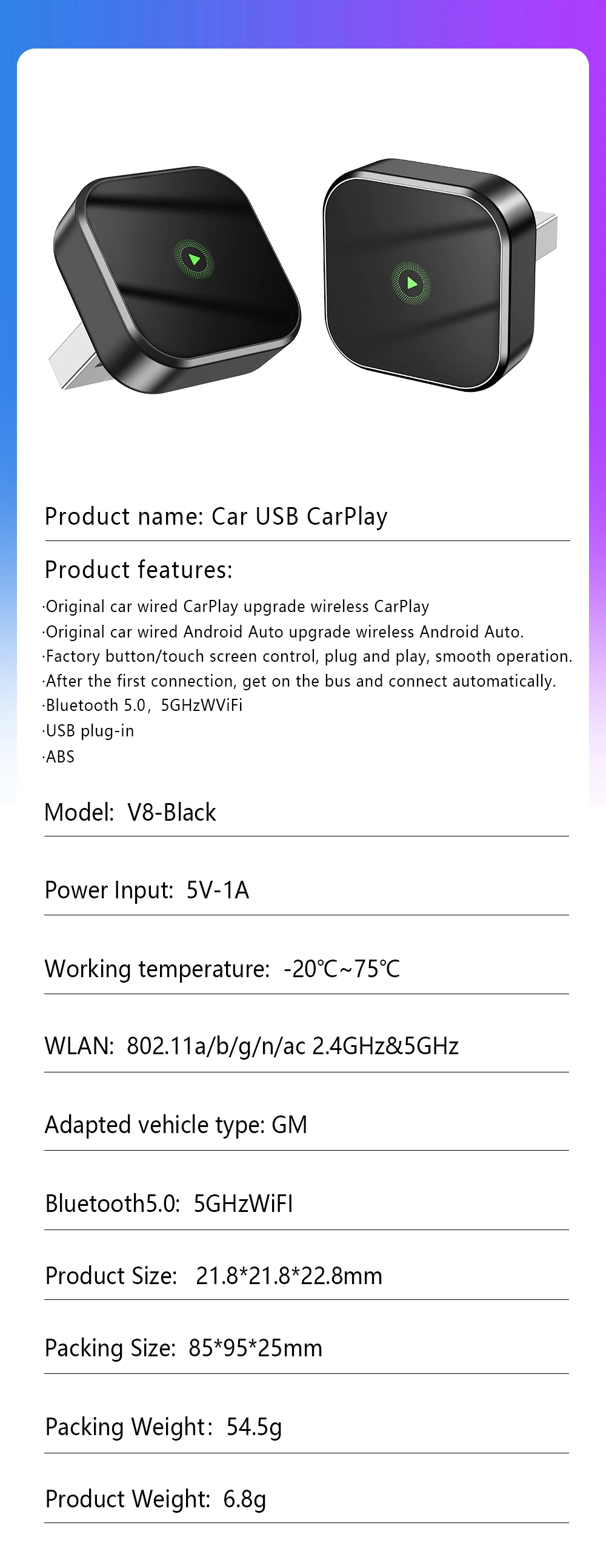 🎀🎀Great Compatibility. Right nowcompatible with 98% of cars on the market with wired CarPlay and Android Auto