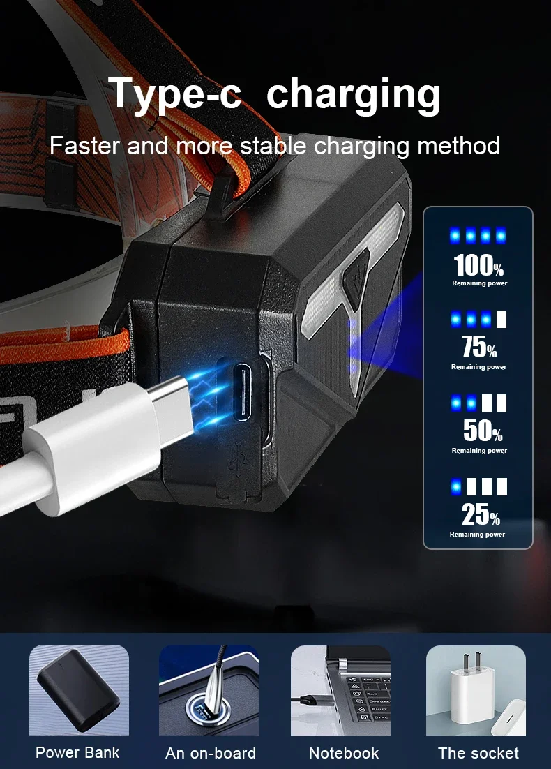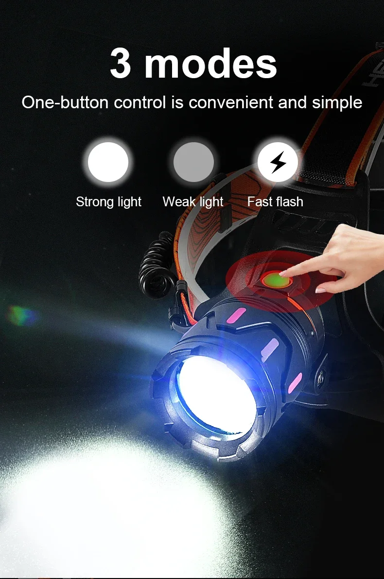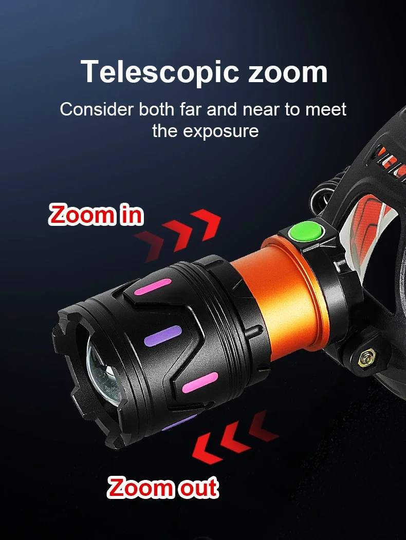 �� Zoom mode: spotlight lighting can easily illuminate distant objects at night, and the fluorescent strip of the lamp holder will light up with it. Floodlighting can illuminate the area in front of you, without blind spots.