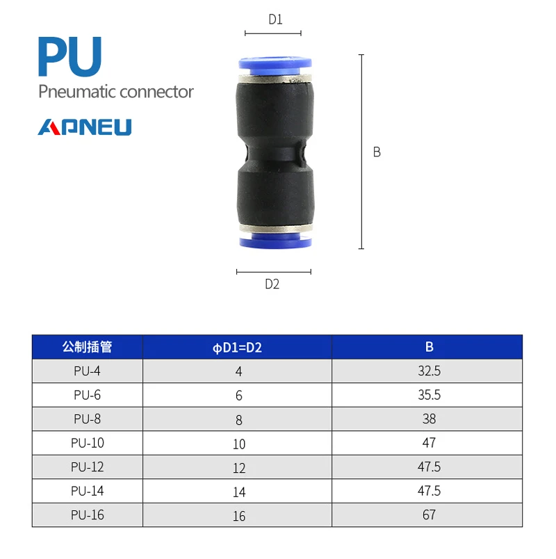 Air Pneumatic Connector PU PV PY PE PM PZA PK HVFF PA Through OD 4mm 6mm 8mm 10mm 12mm 14mm 16mm HoseTube Plastic Quick Connector FittingsFit For Tube Size:4mm 6mm 8mm 10mm 12mm 14mm 16mm Hose TubeOperating Pressure: 0~1MpaOperating Temperature Range: 0~60℃Fluid Type:Air / VacuumFit For Tube Material:PU/PE/Nylon ,PolyurethaneQuick Fitting Material: Plastic
