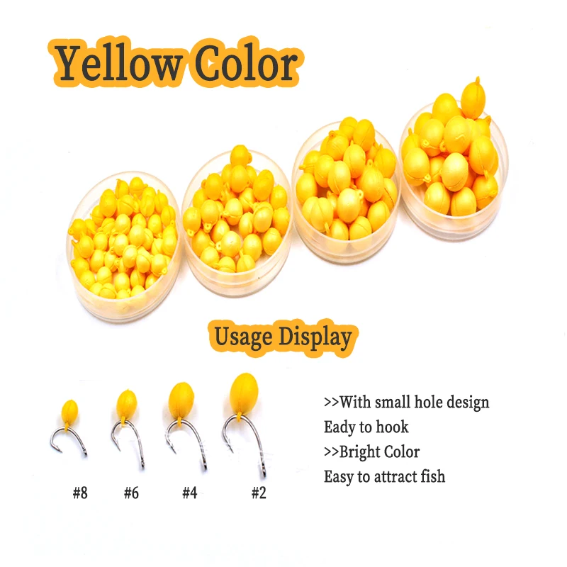 Features: 1: With small hole design, easy to hook on 2: Bright color, easy to attract the fish. 3: Light favor, corn, strawberry, potato etc to choose. 4:Large buoyancy,deep water resistance.