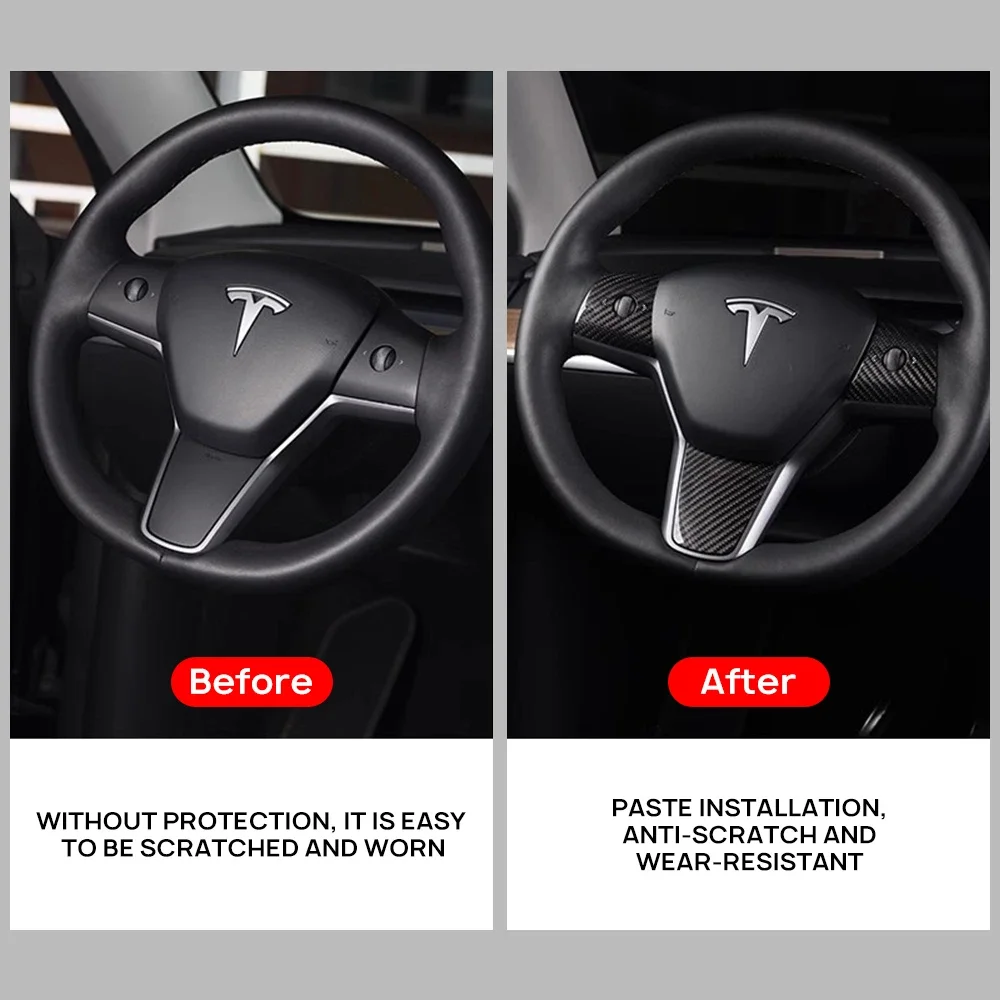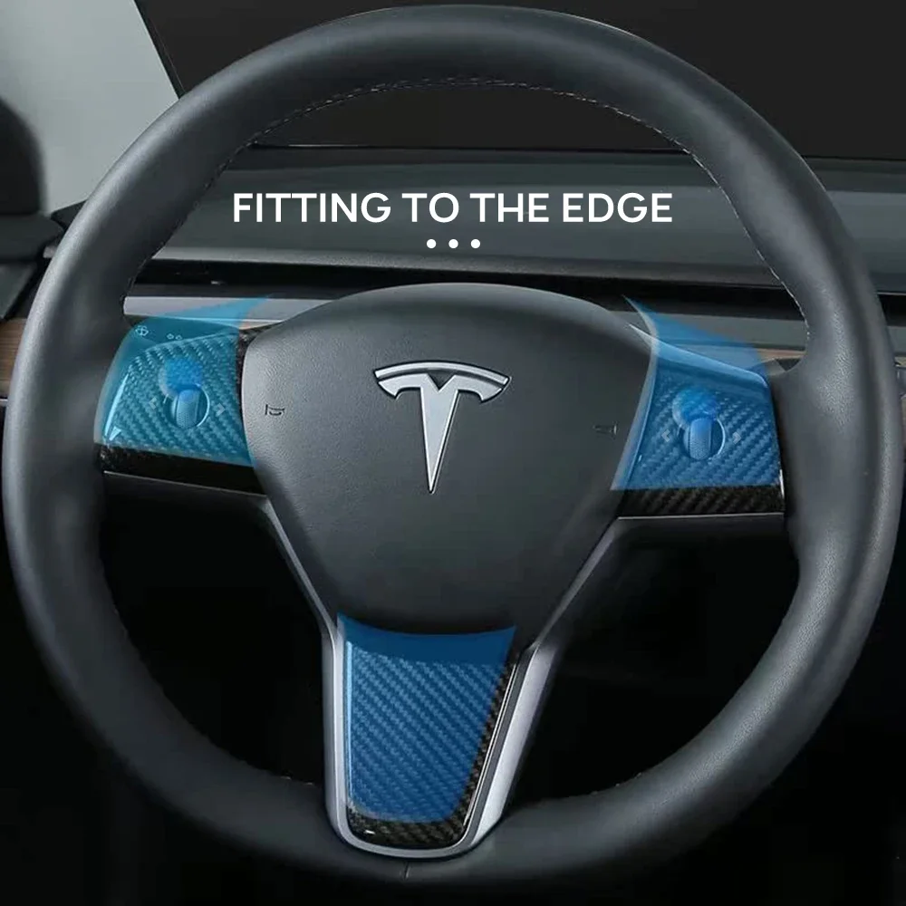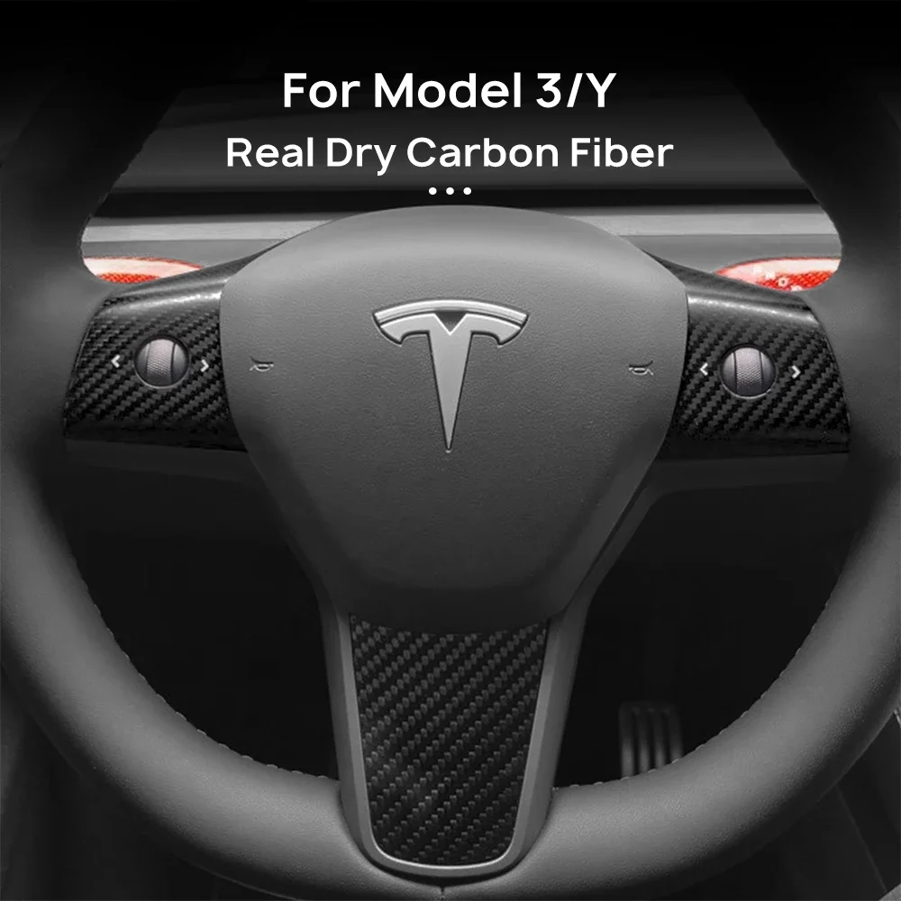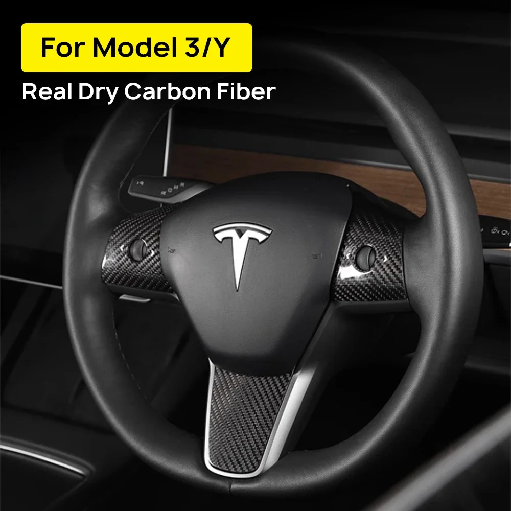 Real Dry Carbon Fiber Car Steering Wheel Cover Case Kit for Tesla Model 3 2017-2023 Model Y 2020-2024 Auto Exterior Accessories