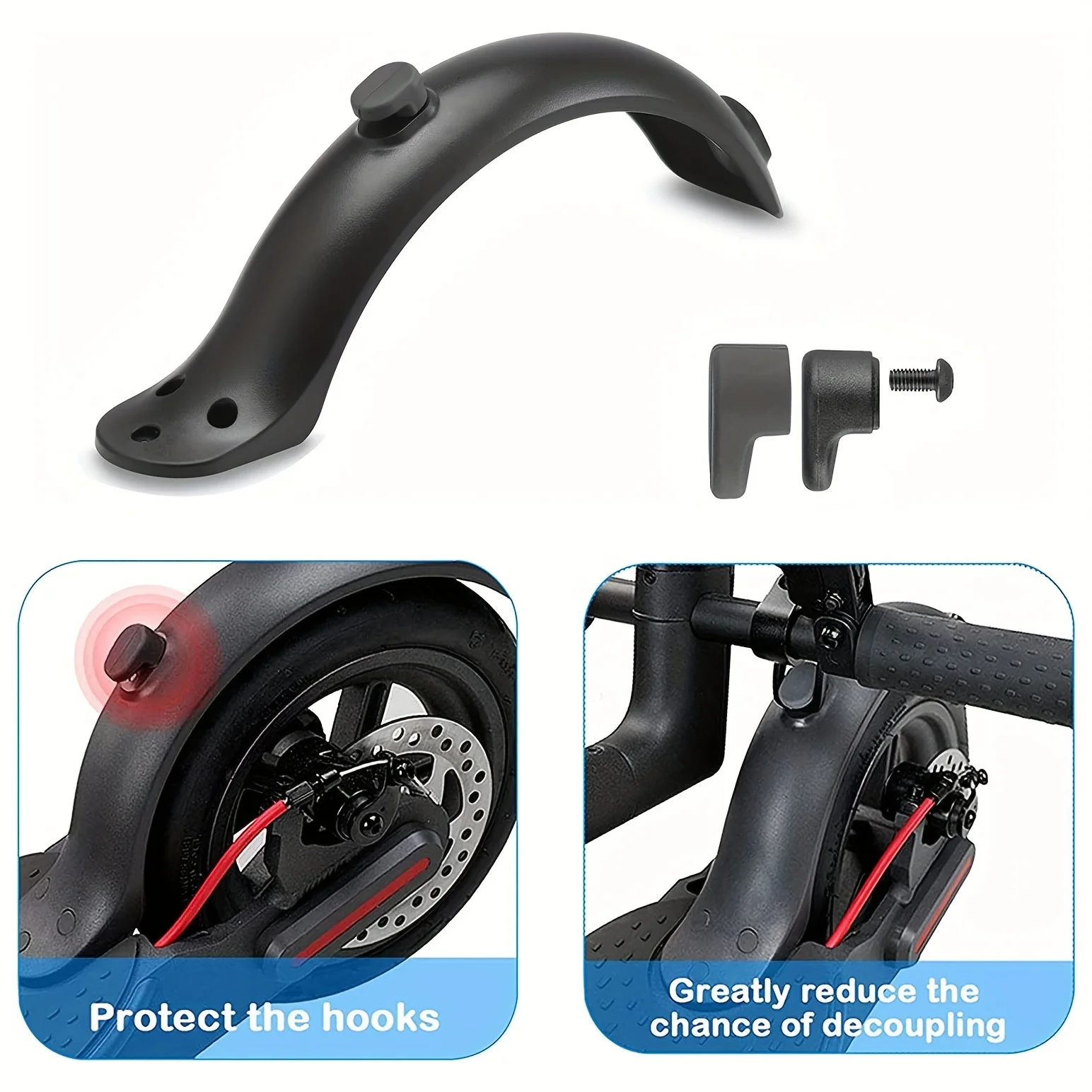 • Premium Design :With its sleek design and integrated taillight, this rear mudguard adds a touch of premium aesthetics to your electric scooter, making it stand out.