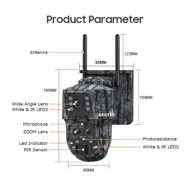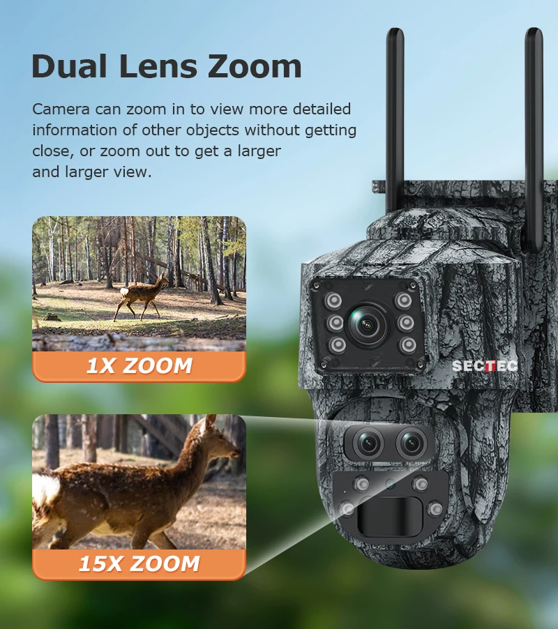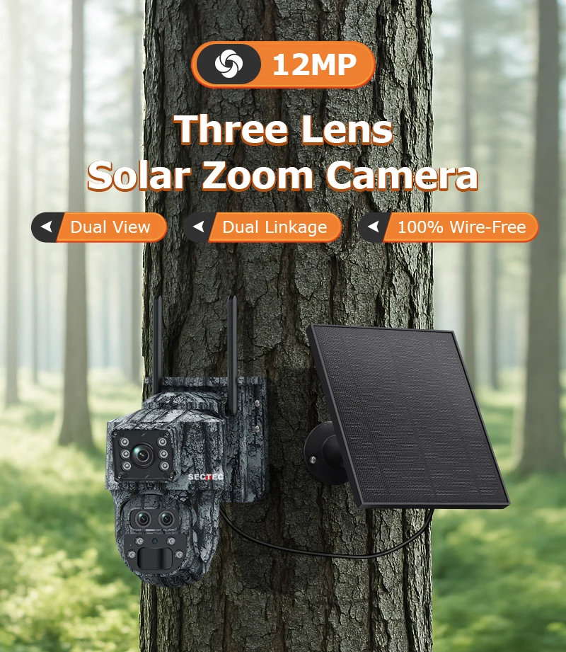 SECTEC 4G【Three Lens】 Security Camera Outdoor WiFi Security Camera CCTV With Human Detection Spotlight Siren Alert TF Cloud Storage IP66