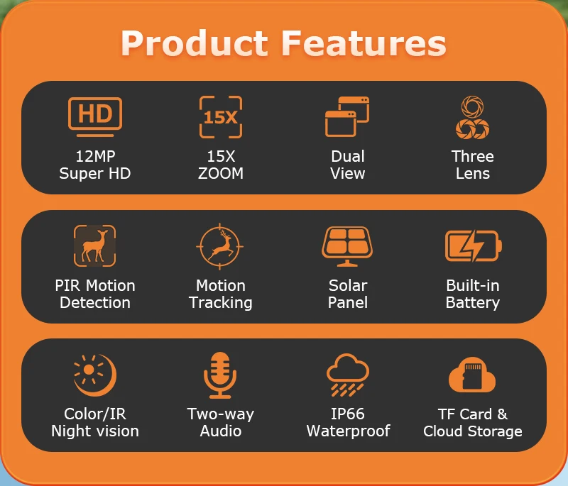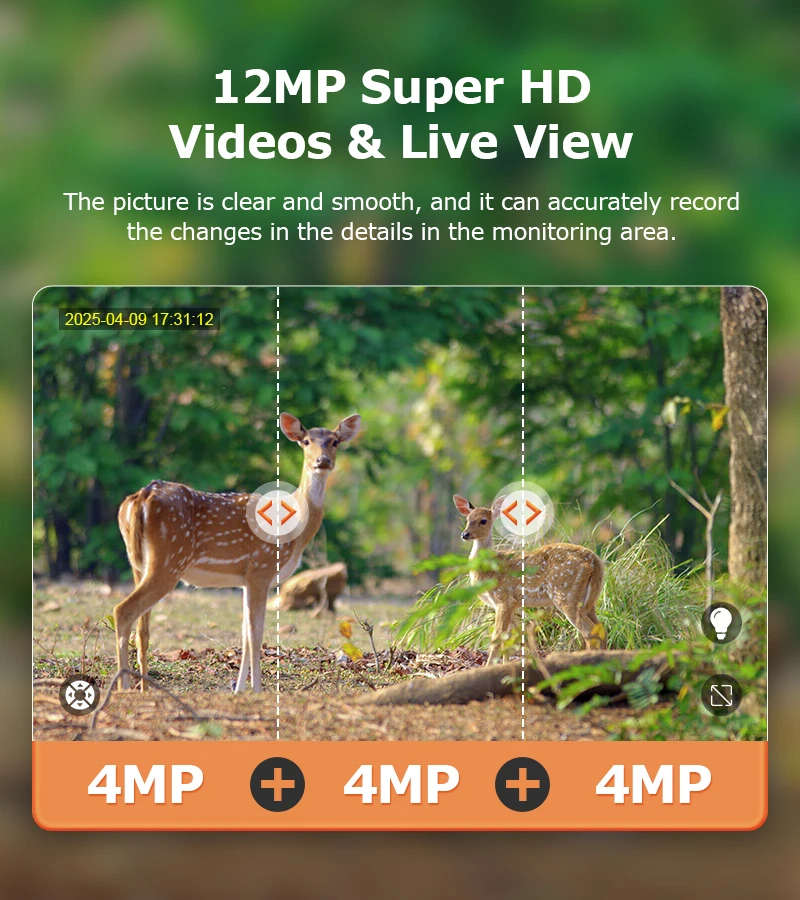 ● 12MP (4MP+4MP+4MP) Resoluction, high penetration lens, high quality imaging