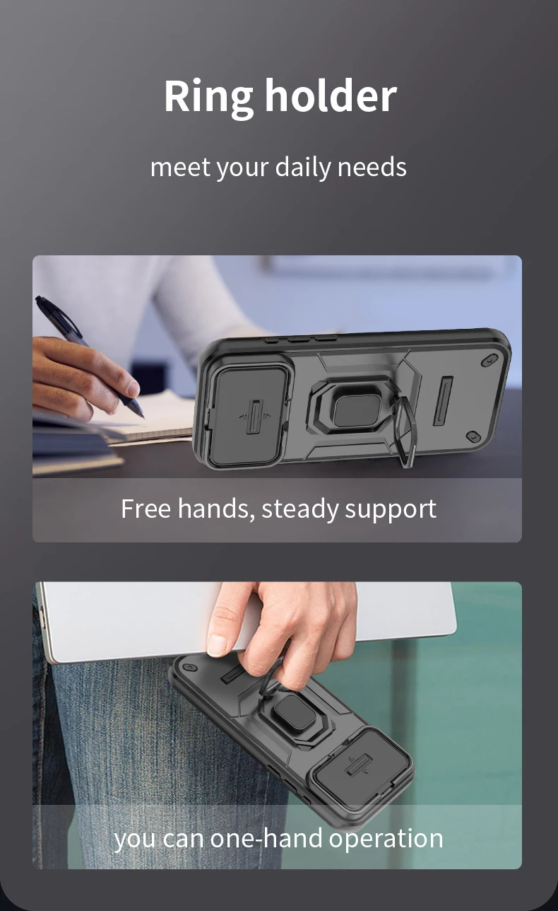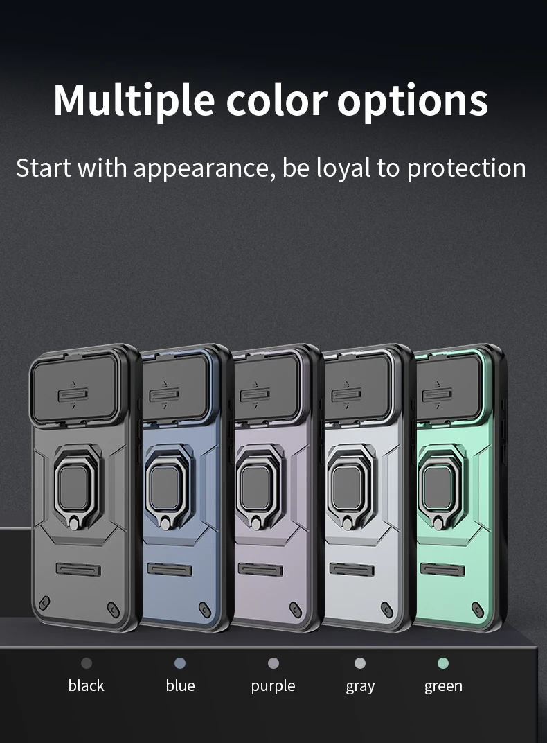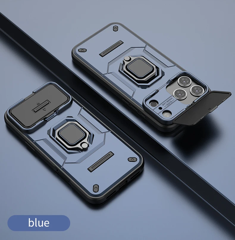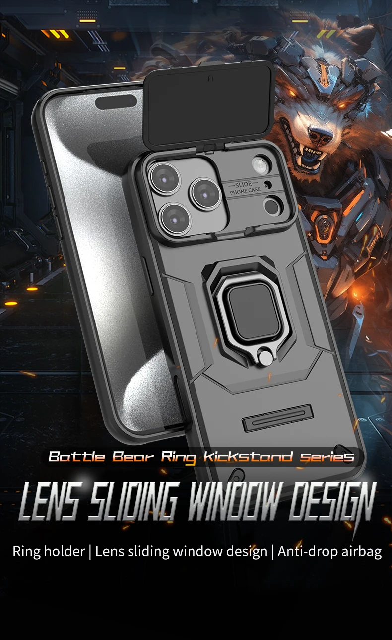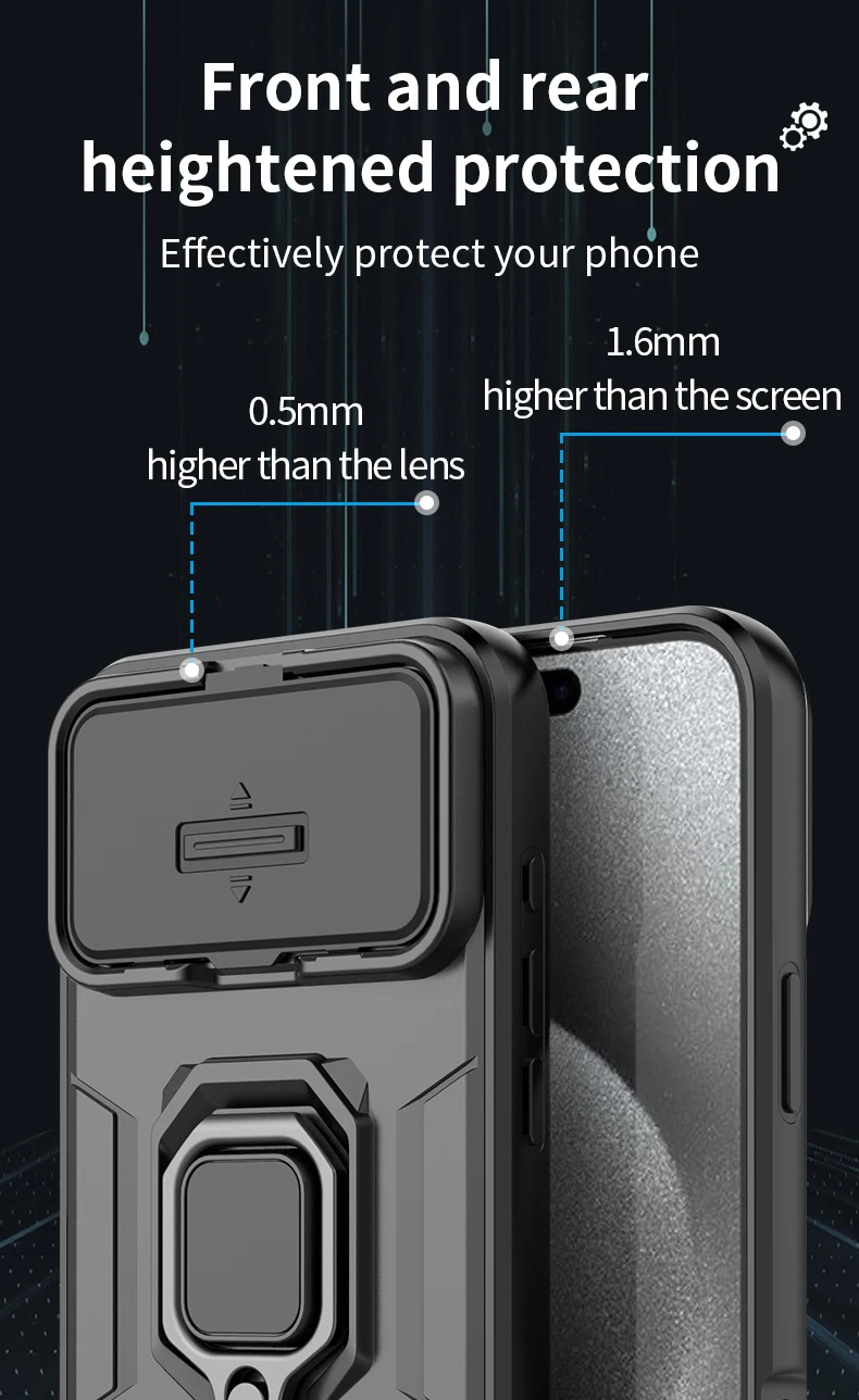 Slide Camera Lens Protection Case For iPhone 17 16 15 14 13 Pro Max Plus Ring Stand Bracket Holder Armor Shockproof Bumper Cover