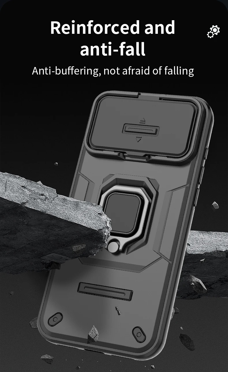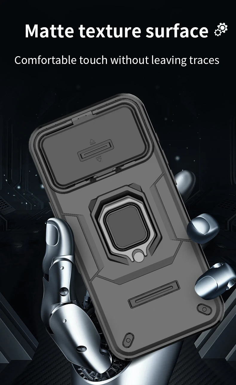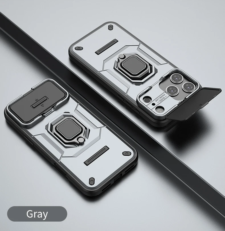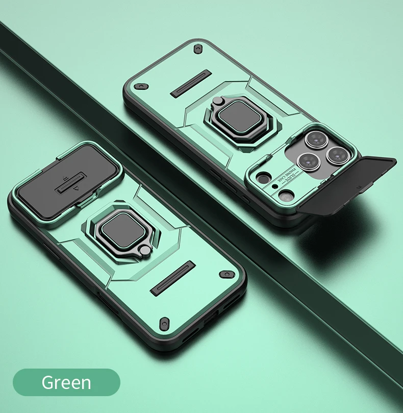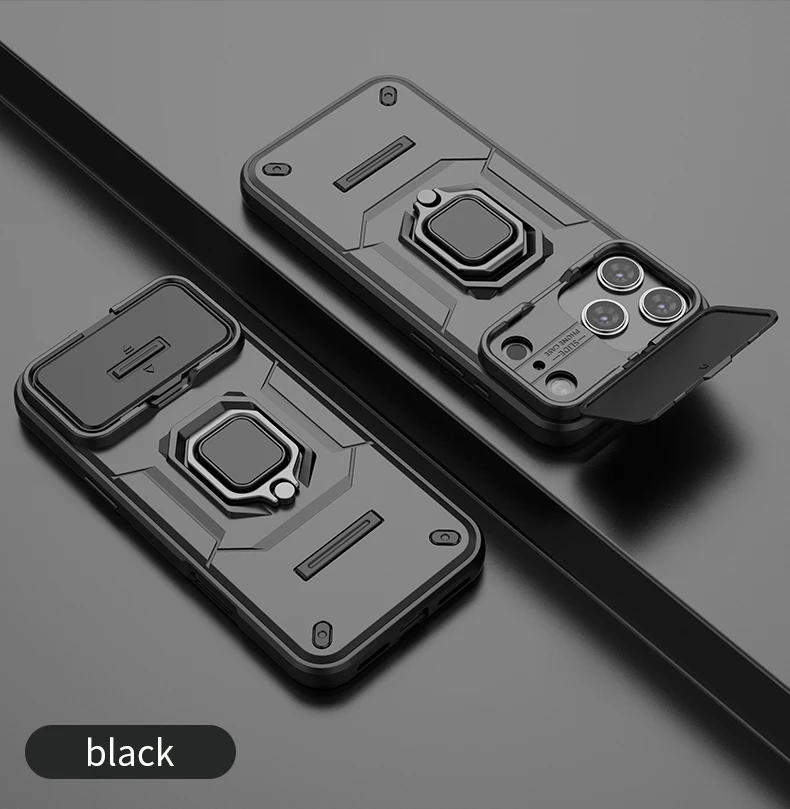 Slide Camera Lens Protection Case For iPhone 17 16 15 14 13 Pro Max Plus Ring Stand Bracket Holder Armor Shockproof Bumper Cover