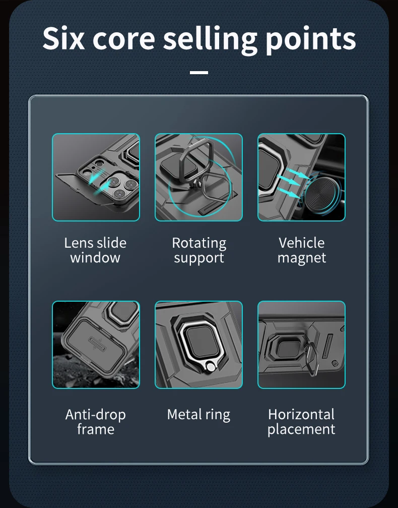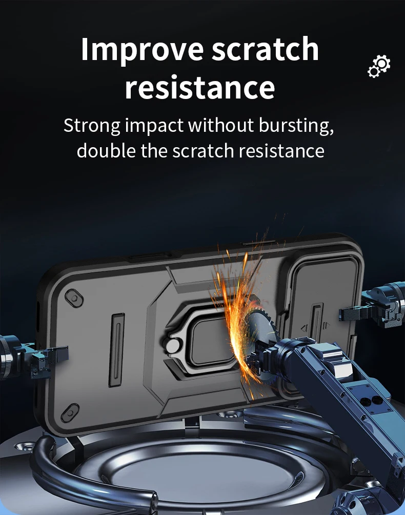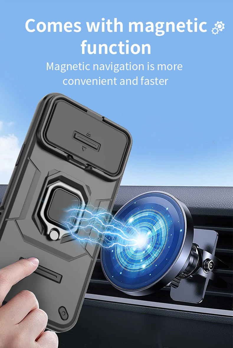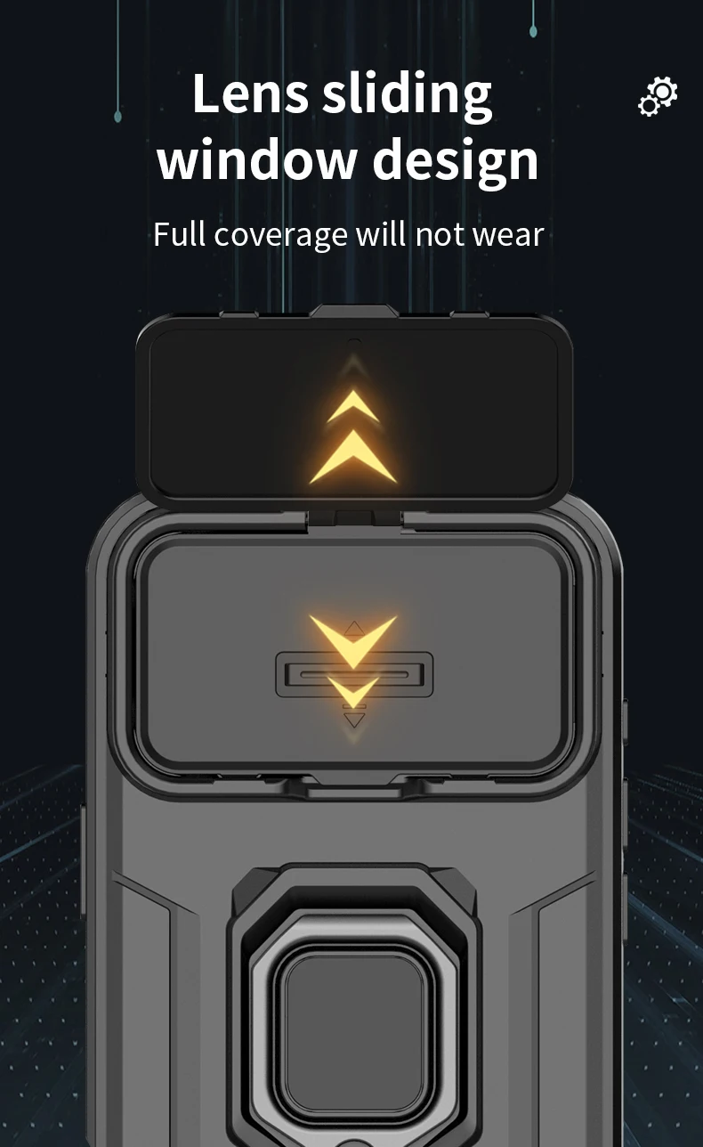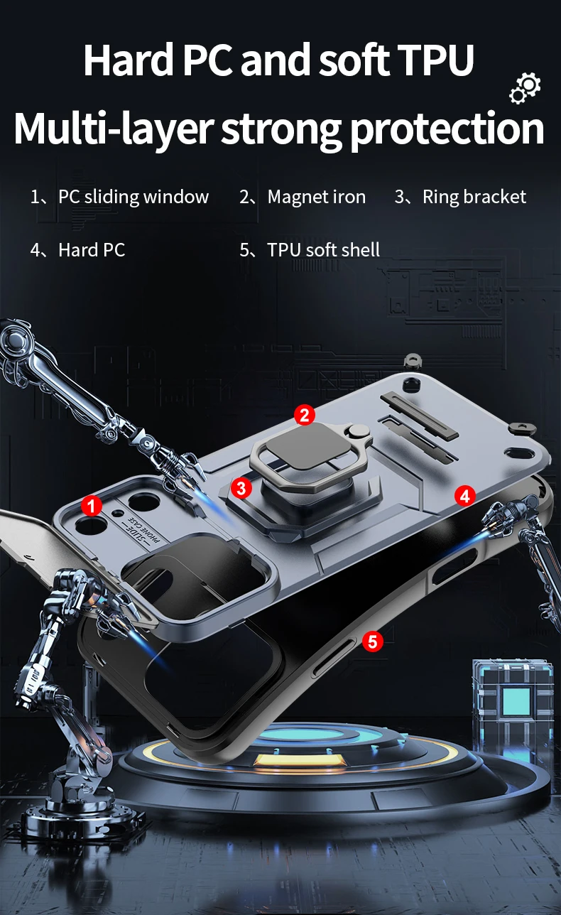Slide Camera Lens Protection Case For iPhone 17 16 15 14 13 Pro Max Plus Ring Stand Bracket Holder Armor Shockproof Bumper Cover