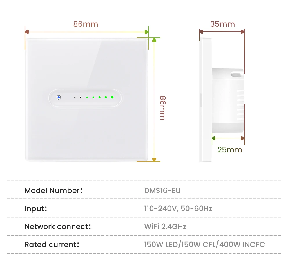 Upgraded texture and sliding design, dimmer switch with sliding indicator light