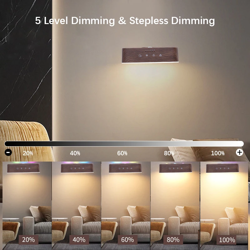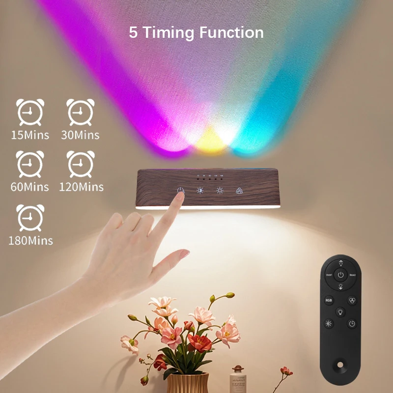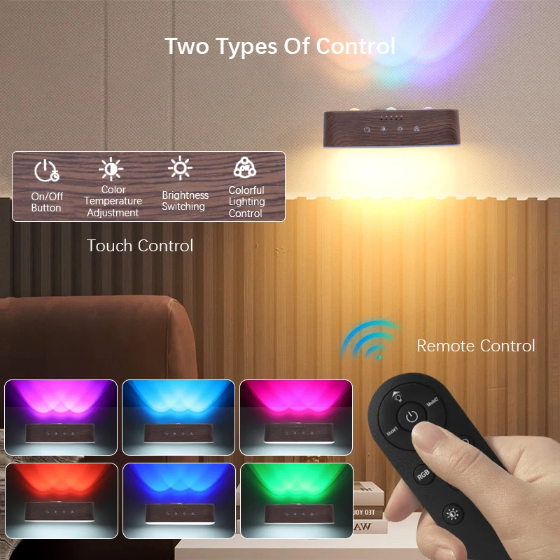 【Dual control mode】Our wall lamp provides two convenient control methods. You can use the touch control of the lamp itself or the included remote control. The touch control panel allows you to easily turn on/off lights, adjust color temperature, switch brightness, and control color lighting. The remote control provides additional convenience, allowing you to operate the lights from a distance.