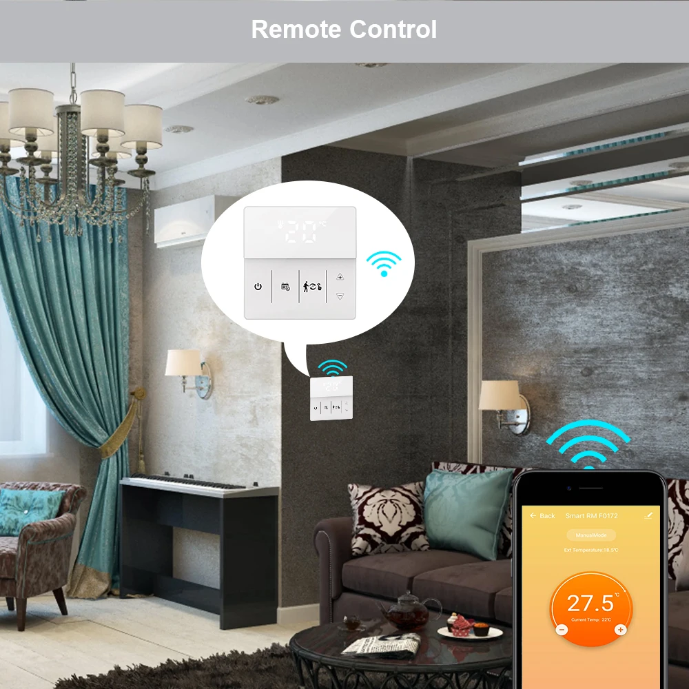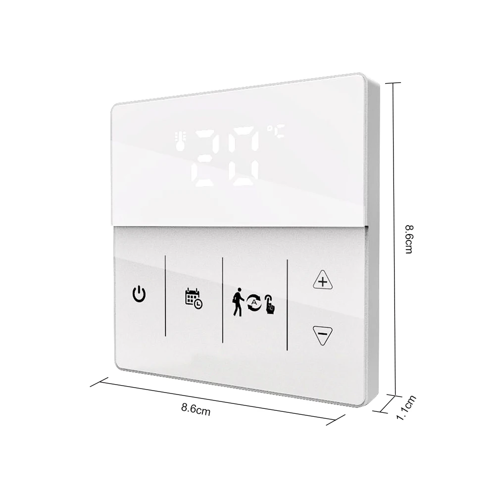 • Installation: Wall mounted make it more simple • Induding built-in sensor and external sensor • Manual mode, auto mode ,holiday mode selectable. • Children lock to prevent misoperation by children • Weekly Programming: 5+2, 6+1,7 days • Digital display, select themperature setting freely, easy for use. • Wifi connection, can be controlled by Tuya Home app from anywhere. • Smart voice control, work with google home and Alexa • Data memory when power is off.