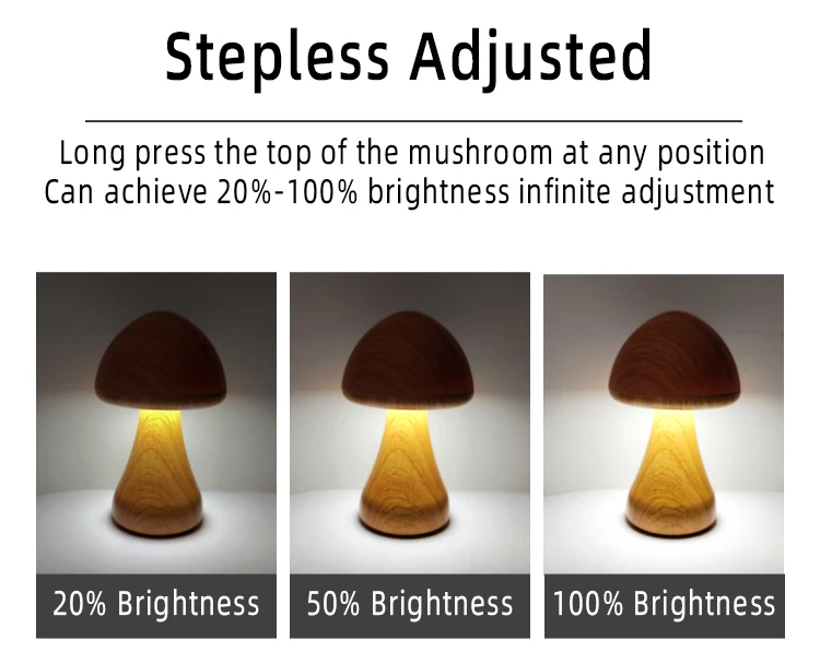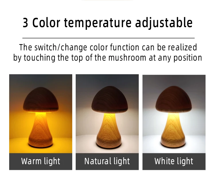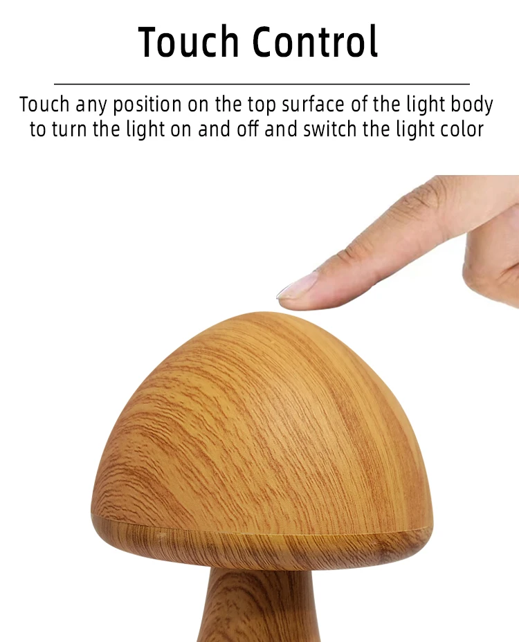 Touch Control With a simple touch on the mushroom-shaped top, you can effortlessly control the night light's on/off function and adjust its color temperature. Prolonged touches also enable brightness adjustment, ensuring you can enjoy different lighting experiences for