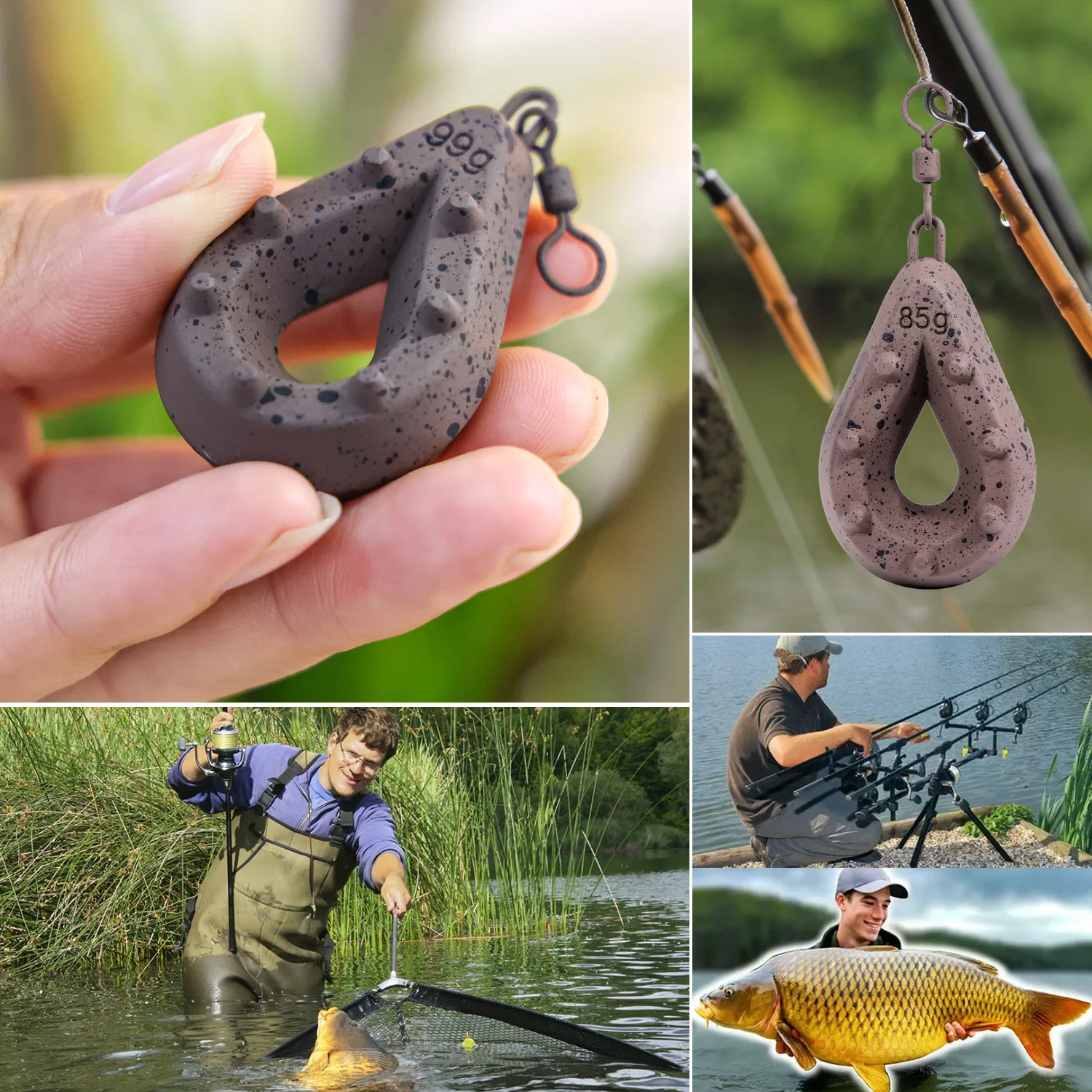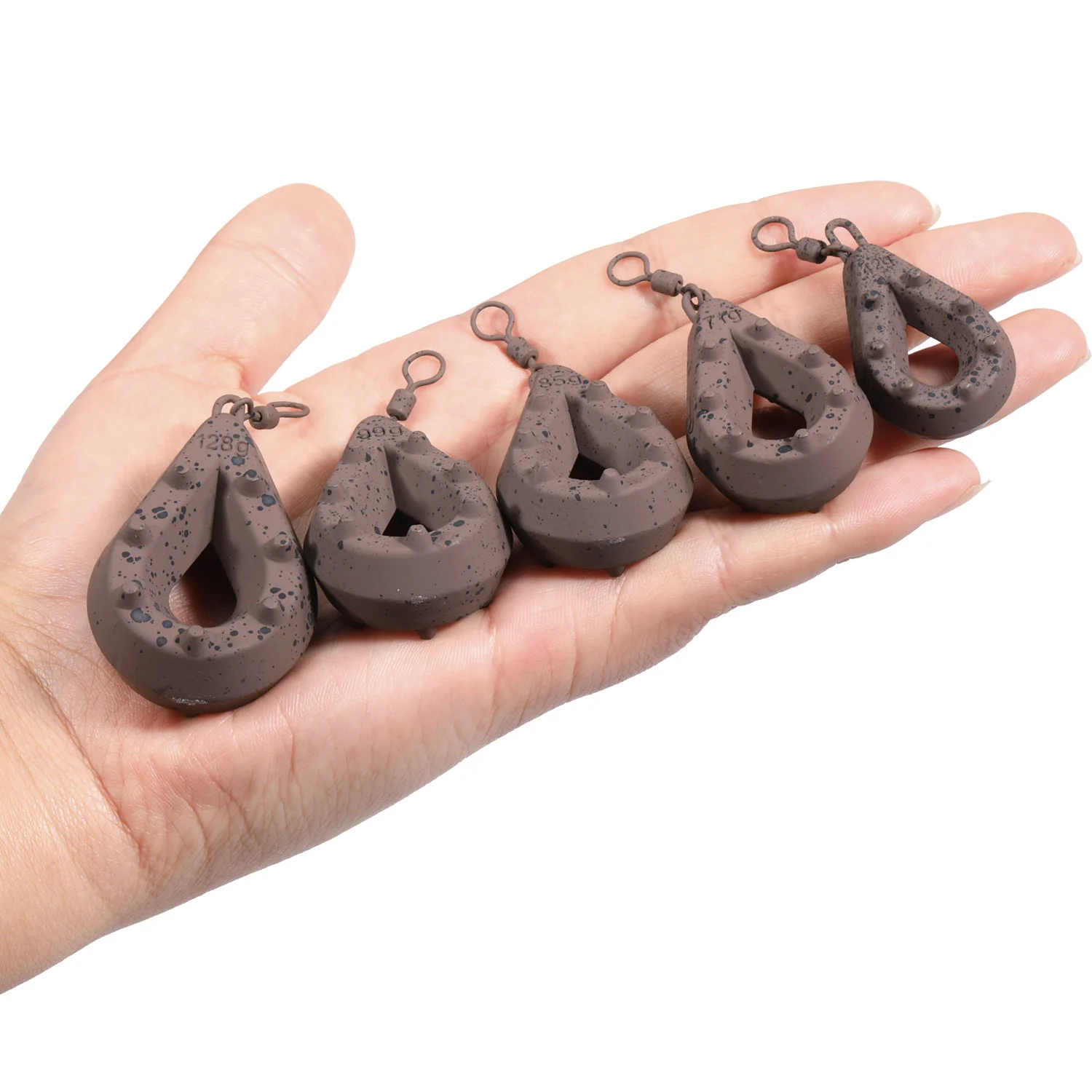 Sougayilang 5pcs Fishing Lead Weights-Teardrop Shape with Coated Surface-Hollow Carp Weights for Slow Release Bait-Fits Any Clip