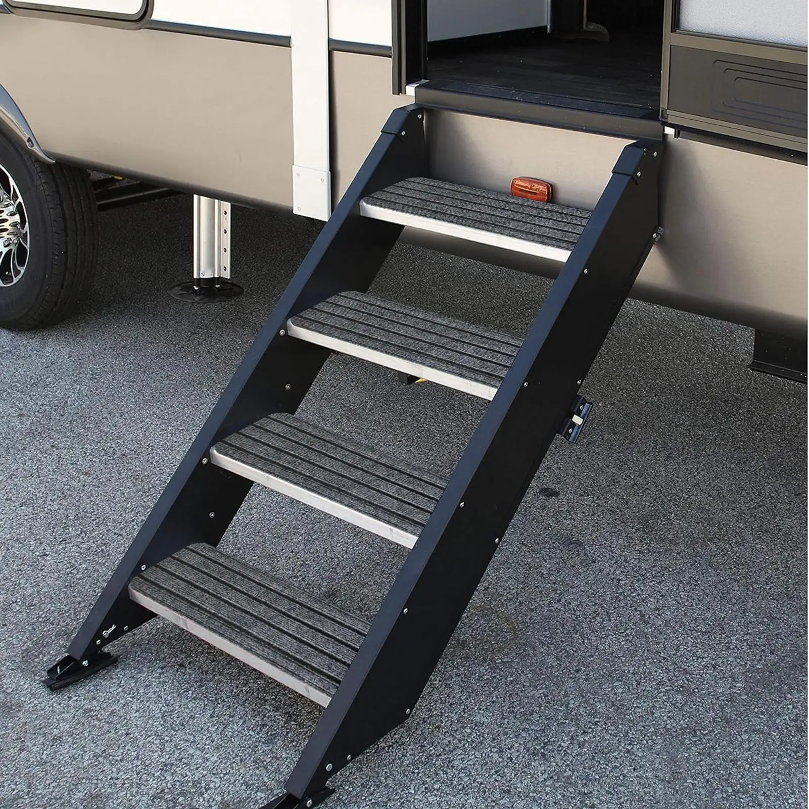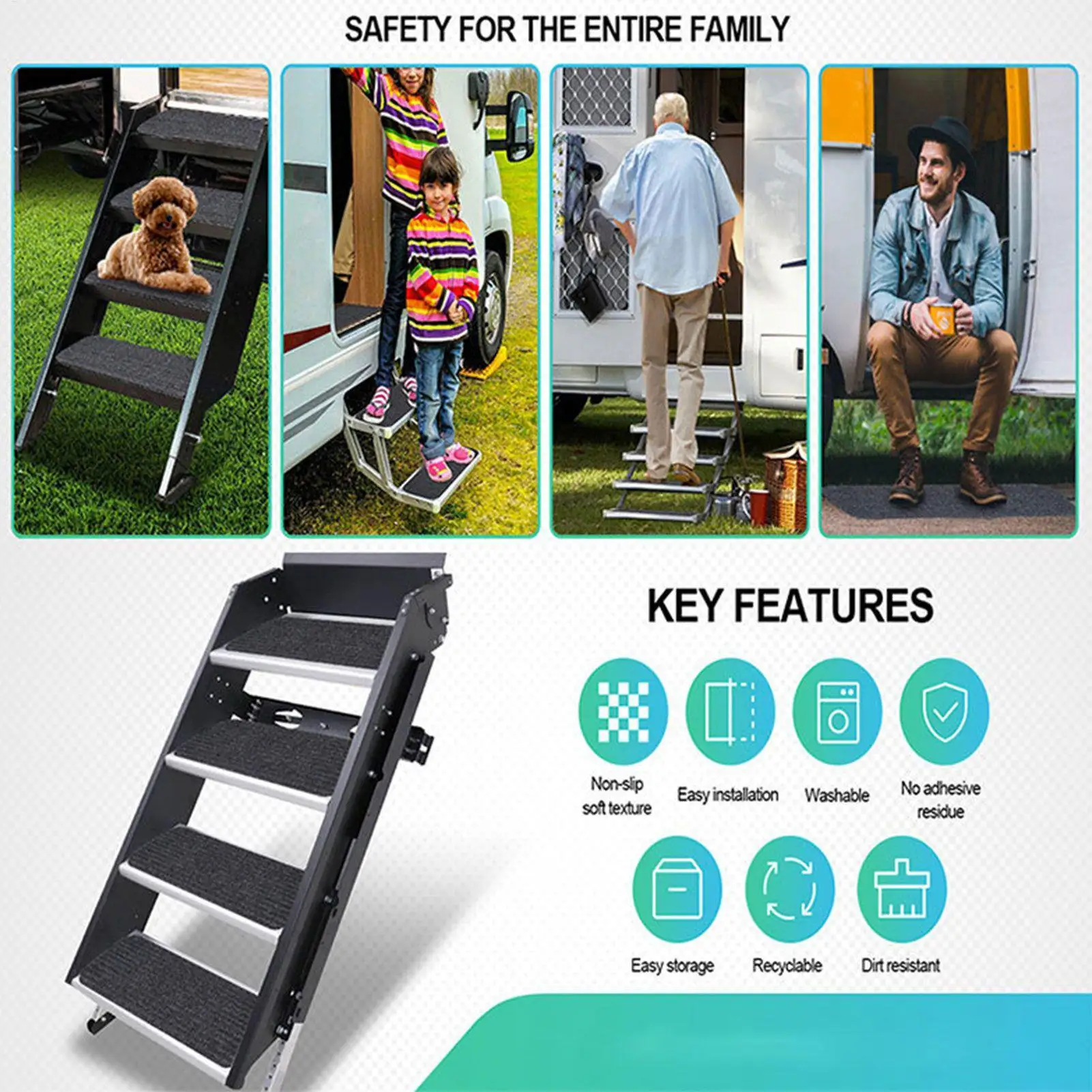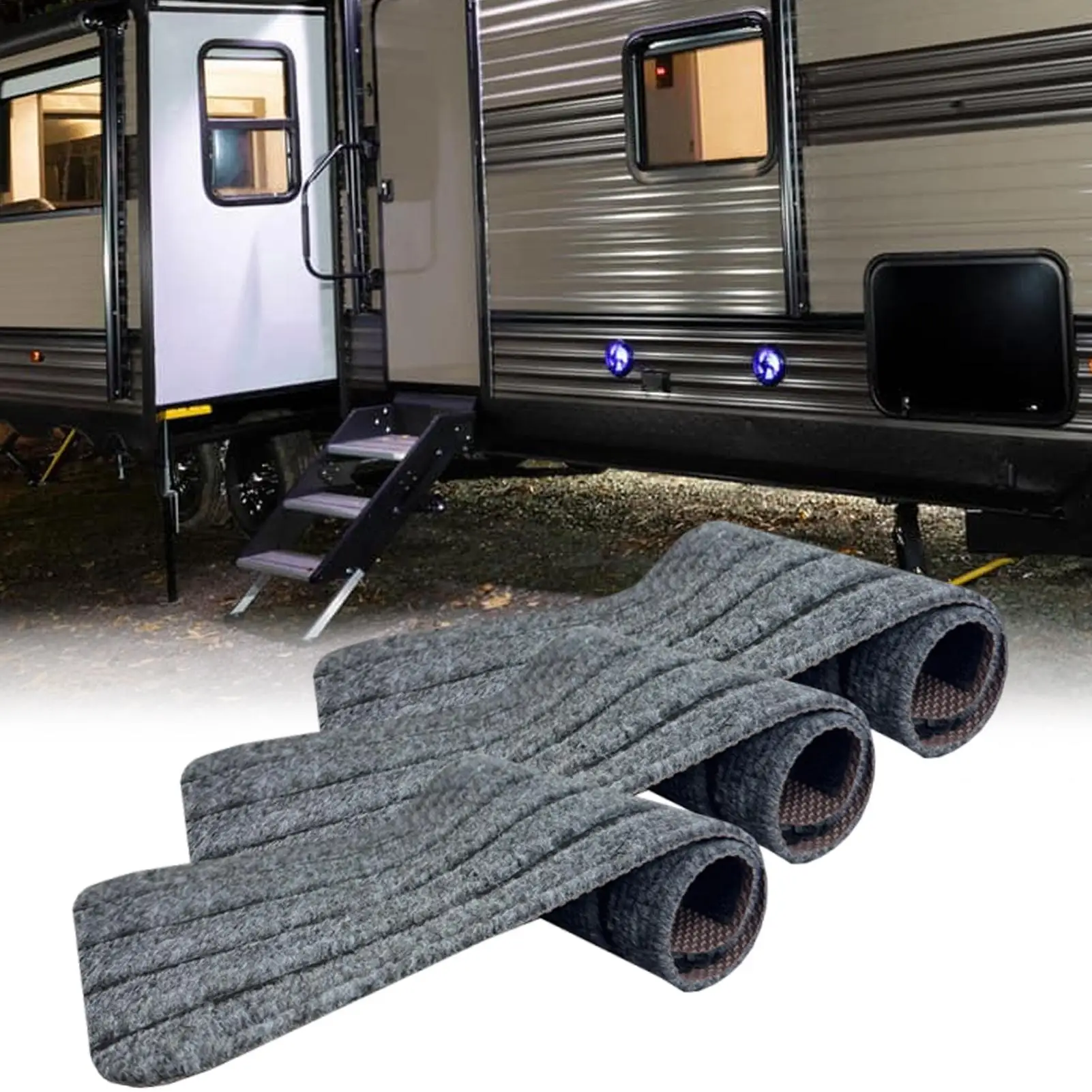 1.Stable and Dependable Steps: Provides non-slip, thick base support, while gripping step surfaces securely, to ensures safe stepping across compatible RV stairs