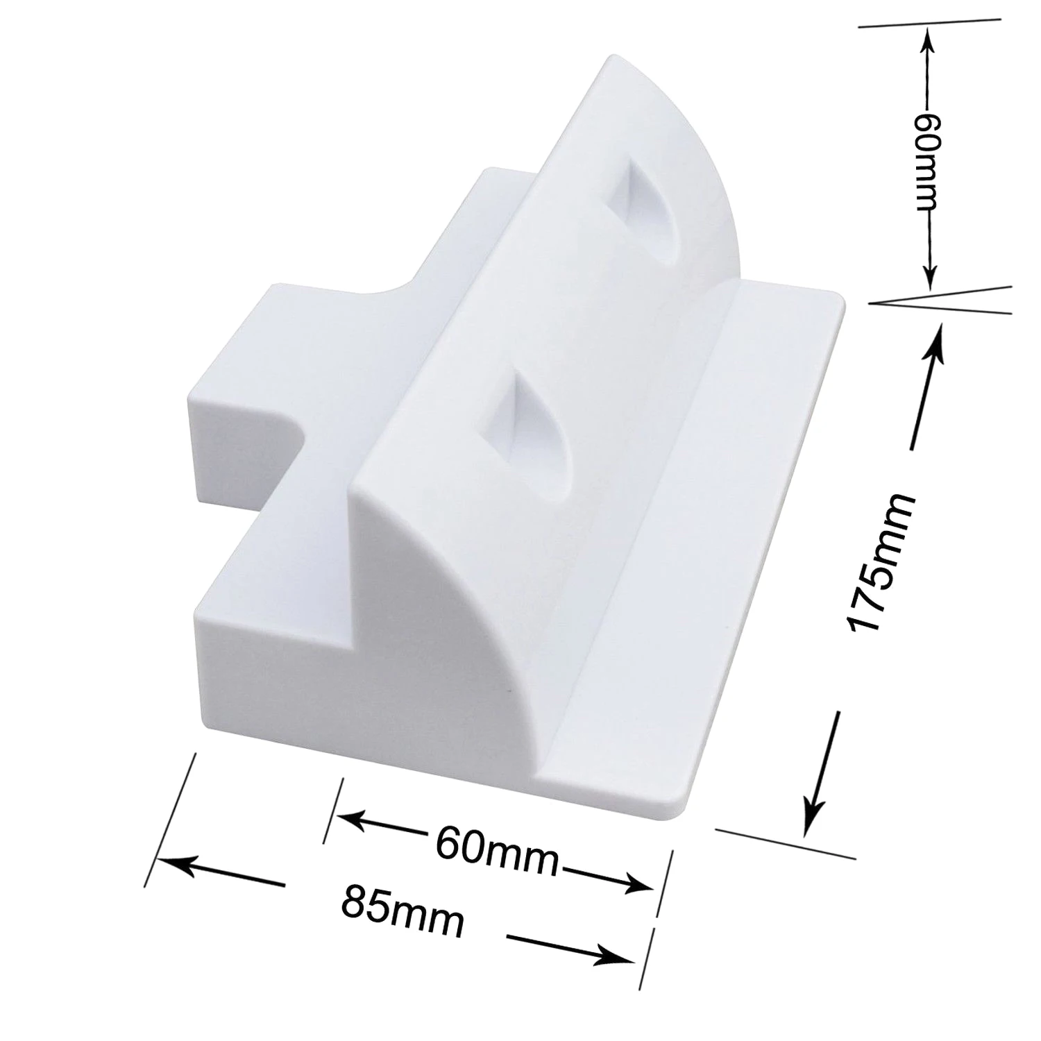 Do not punch holes and do not damage any mounting surface. Anti-UV, anti-UV agent is added to the product, and it will not change color for a long time. The product is installed with glue and has a beautiful appearance. Ideal for bonding to the roof - no need for drilling Strong and secure fitting for small and larger solar panels Great for motorhomes, campervans, caravans, lorries, buses or other flat surfaces Can also be used on flat roofs of buildings, sheds, garages etc. Suitable for a range of rigid-framed solar panels Strong and secure fitting for small and larger solar panels colour:white Material:plastic size:18x9x6.5cm Package Contents: 2x Side mounting brackets Only the above package content, other products are not included. Note: Light shooting and different displays may cause the color of the item in the picture a little different from the real thing. The measurement allowed error is +/- 1-3cm.