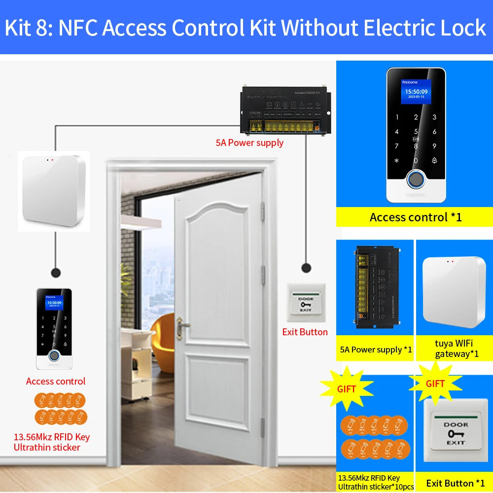 Tuya App Fingerprint RFID Access Control System Kit Smart Door Lock Electronic Gate Bluetooth Opener Home Digital Set Biometric