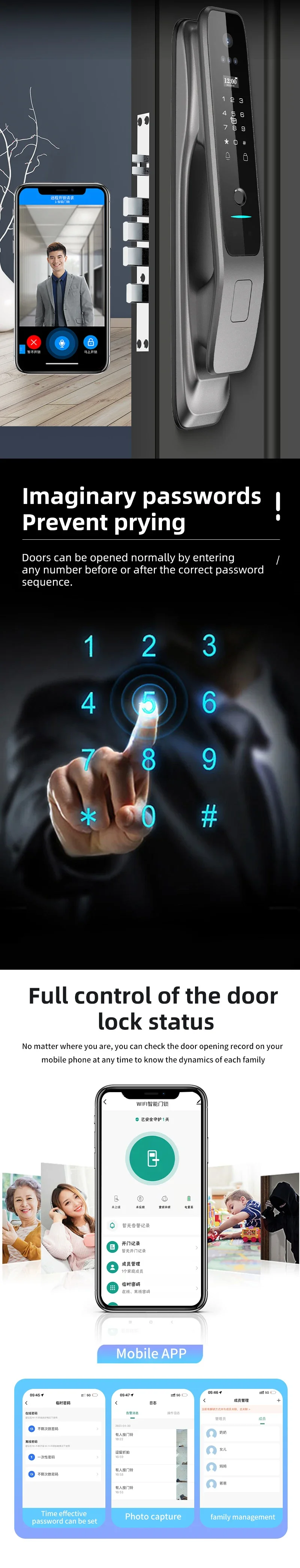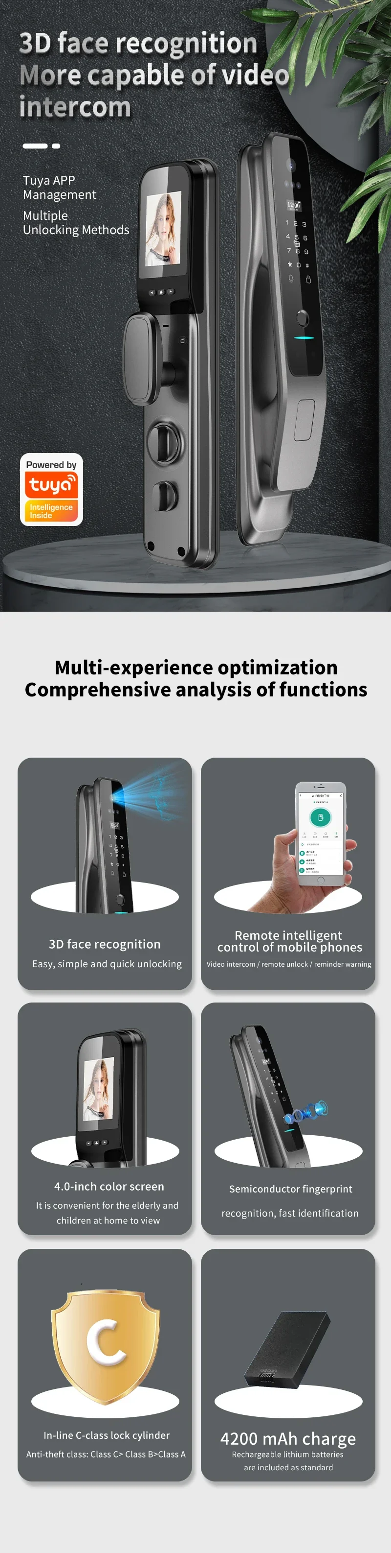 Glomarket Tuya Smart Door Lock With Camera Manufacturers Prices Security Biometric Fingerprint Fully Automatic Smart Lock
