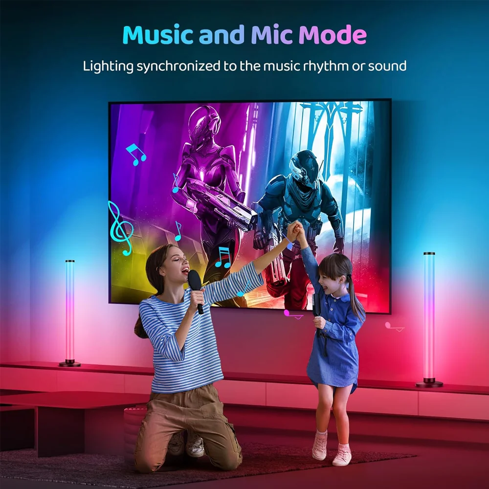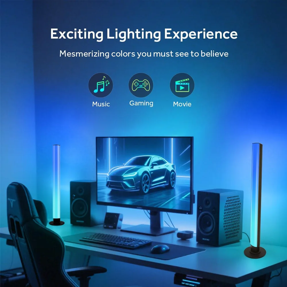 Features: * [Immersive Lighting Atmosphere] This smart LED light bar 180° half-screen light, greatly reducing dark corners and shadows to provide perfect and eye-protective lighting. Equipped with a high-sensitivity sound sensor that reacts and moves to the beat of music, movie, and game audio, these lights deliver an immersive sound and light experience perfect for creating an atmosphere for parties, karaoke, or gaming.