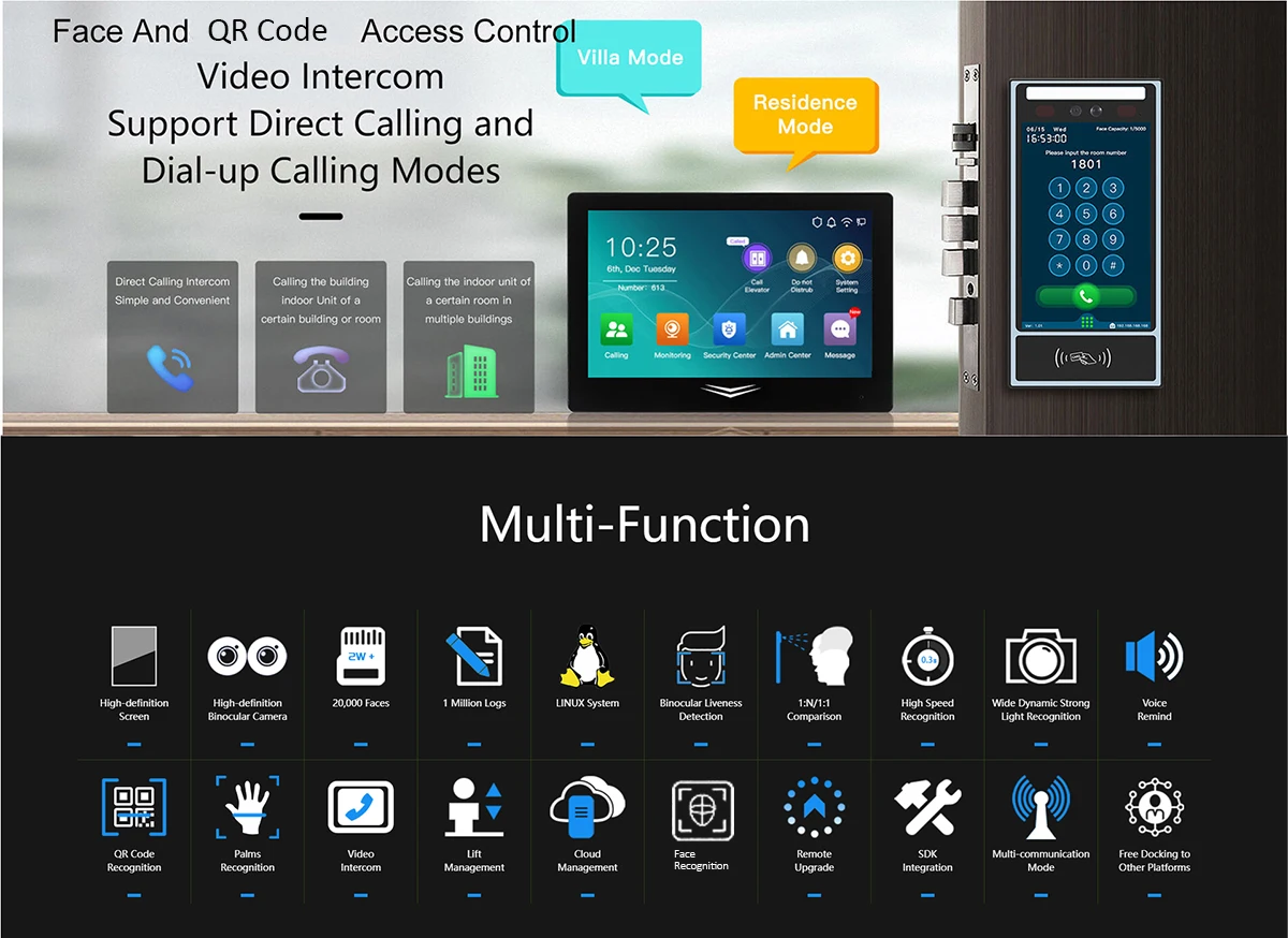 Main Uses: Access Control, Time Attendance, Video Intercom.