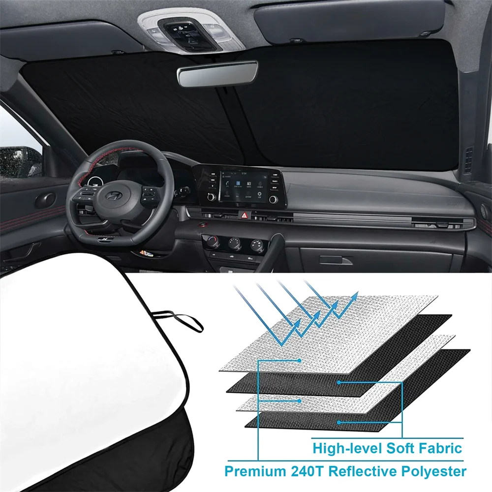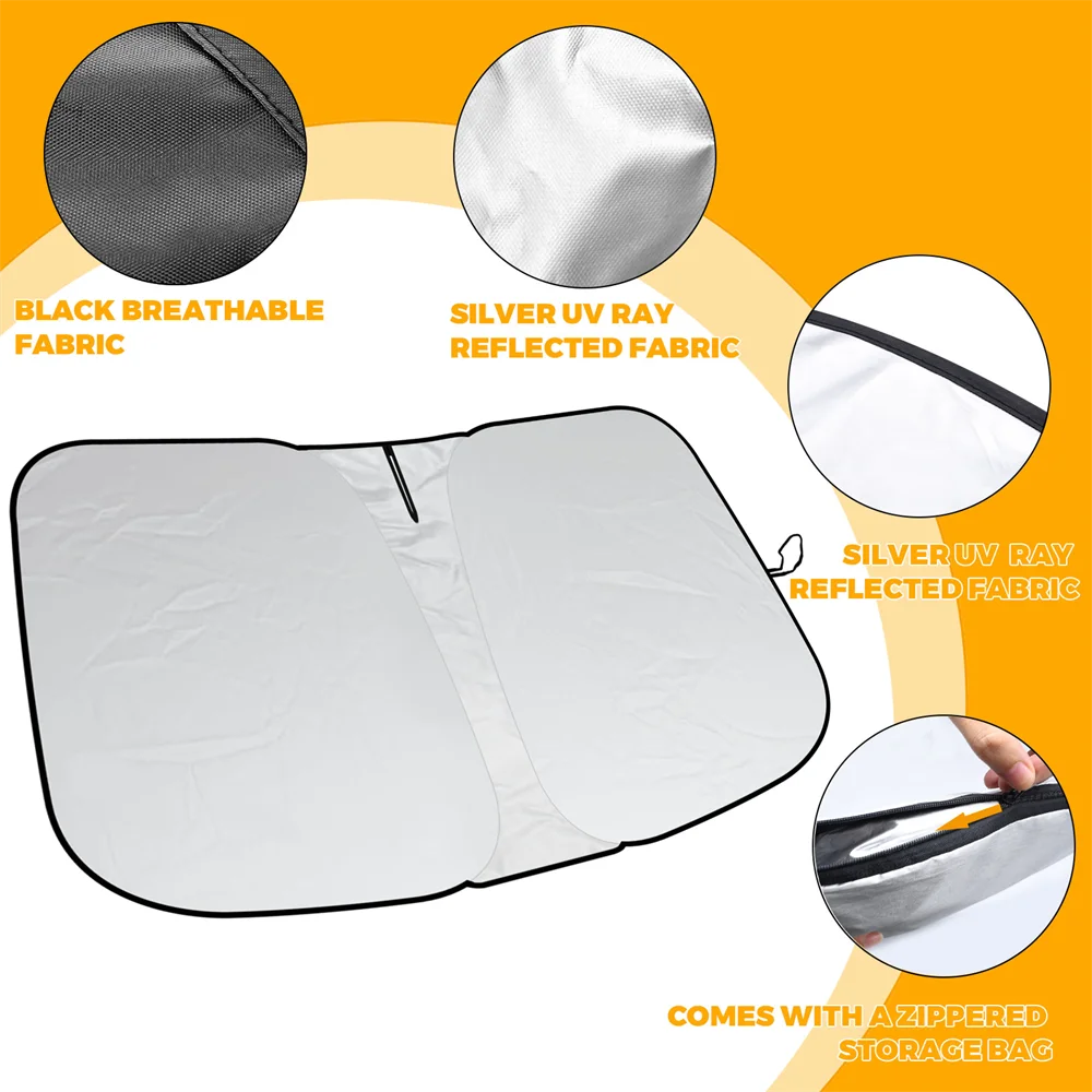 Keep car cool: Outer titanium silver coating block sunshine and reflect 90% UV. Inner black breathable nylon polymer absorb light to prevent heat into your car to keep cool.