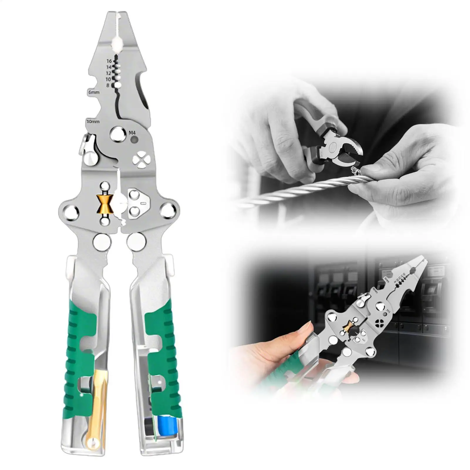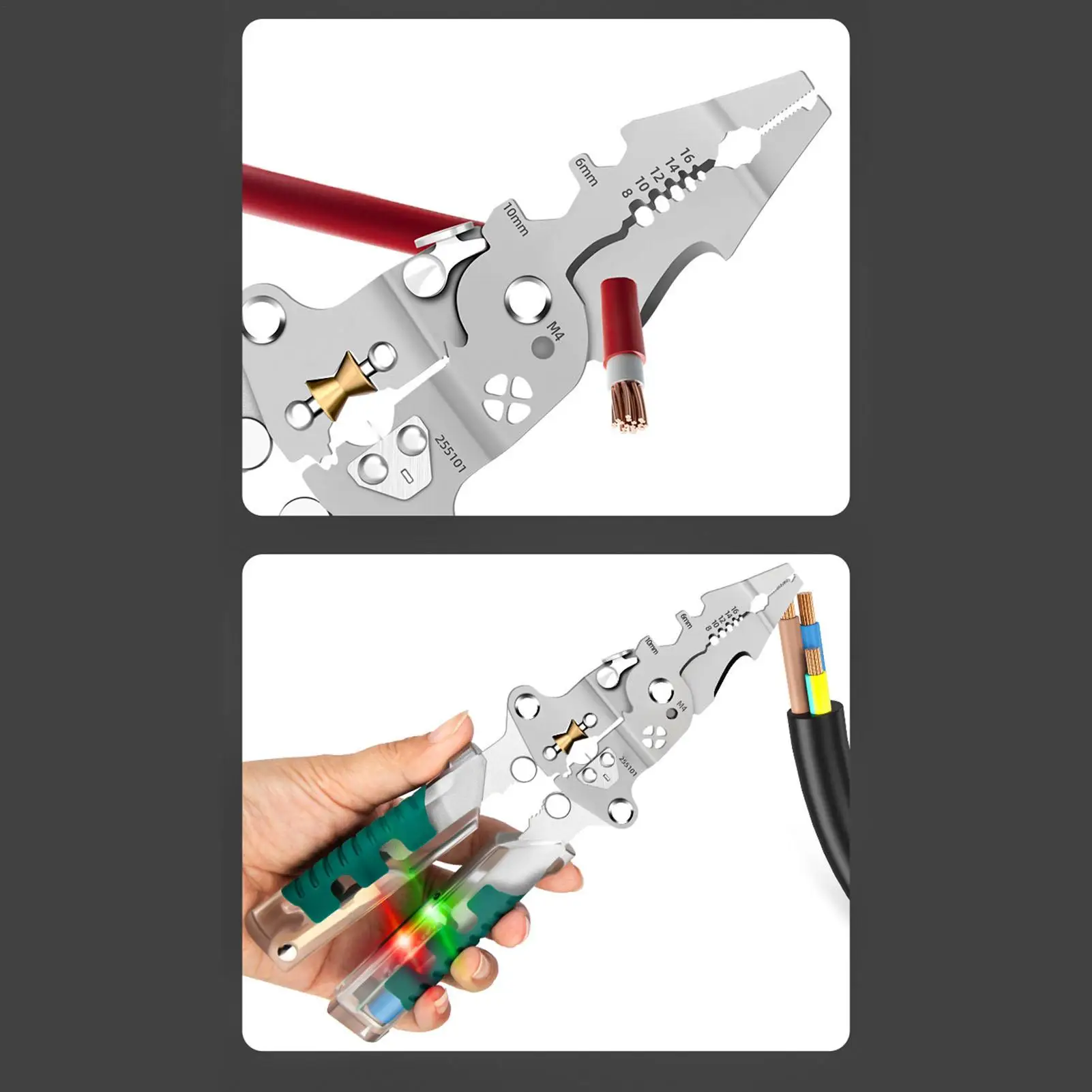 This multifunctional wire stripper is engineered for electricians and DIYers tackling home improvement or repair projects. With features such as cutting, crimping, and voltage testing, it offer versatility and convenience. The foldable design adds portability, while its precision ensures accuracy for all types of electrical maintenance and installations.