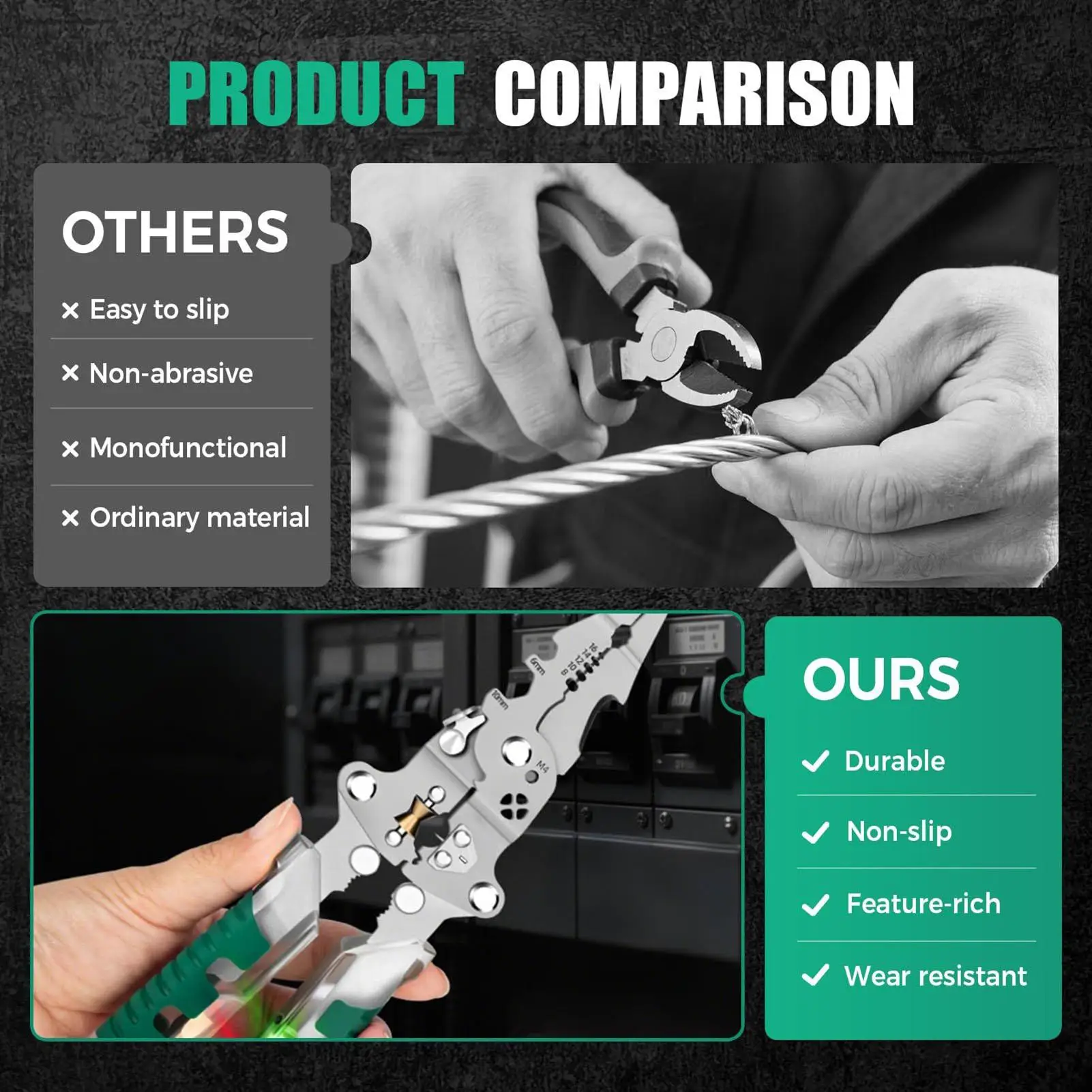 3.Various Function: Combining wire stripping, cutting, crimping, and screwdriver tasks, this versatile electrical tool meets diverse needs for efficiency and convenience in various projects